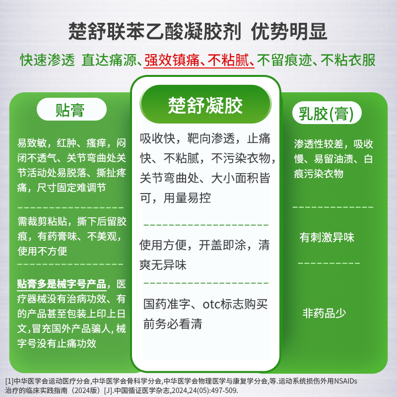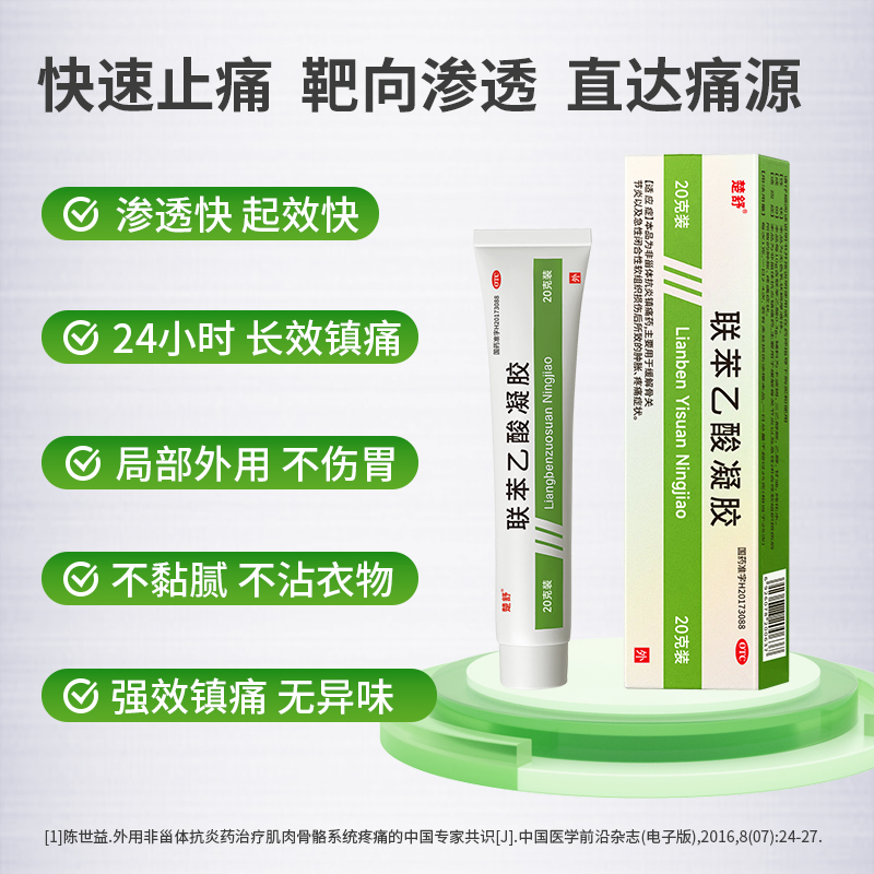 楚舒联苯乙酸凝胶3%20g腱鞘炎肩周炎膏药活血止痛风湿骨外伤
