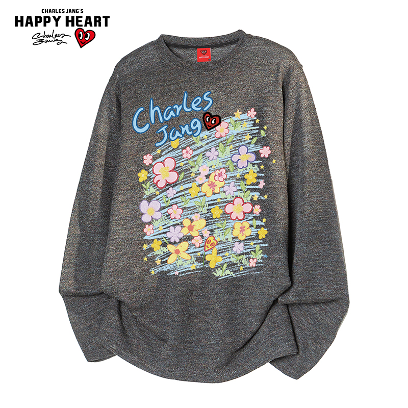 美式 圆领打底衫 花卉印花长袖 潮牌百搭新款 t恤男春秋季 查尔斯桃心
