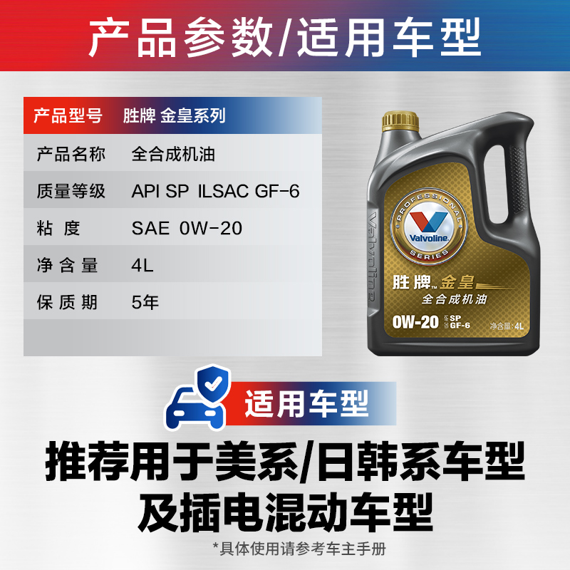 款 全合成机油发动机润滑油0W 胜牌 金皇经典 Valvoline