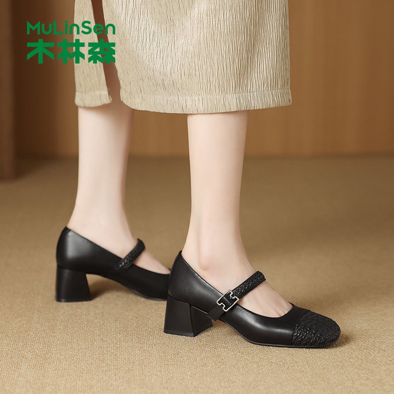 2025新款 温柔配裙子高跟鞋 春秋时尚 中粗跟单鞋 百搭法式 玛丽珍女鞋