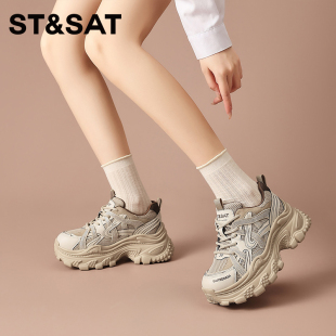 子 厚底增高休闲情侣透气运动鞋 骆驼银月户外复古老爹鞋 女2025新款