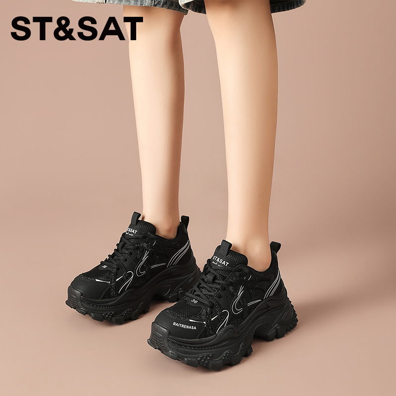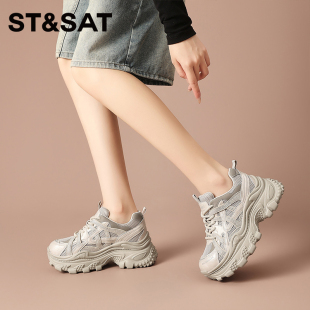 2025秋季 骆驼女鞋 新款 休闲透气老爹鞋 女 厚底增高银色运动鞋 银熠