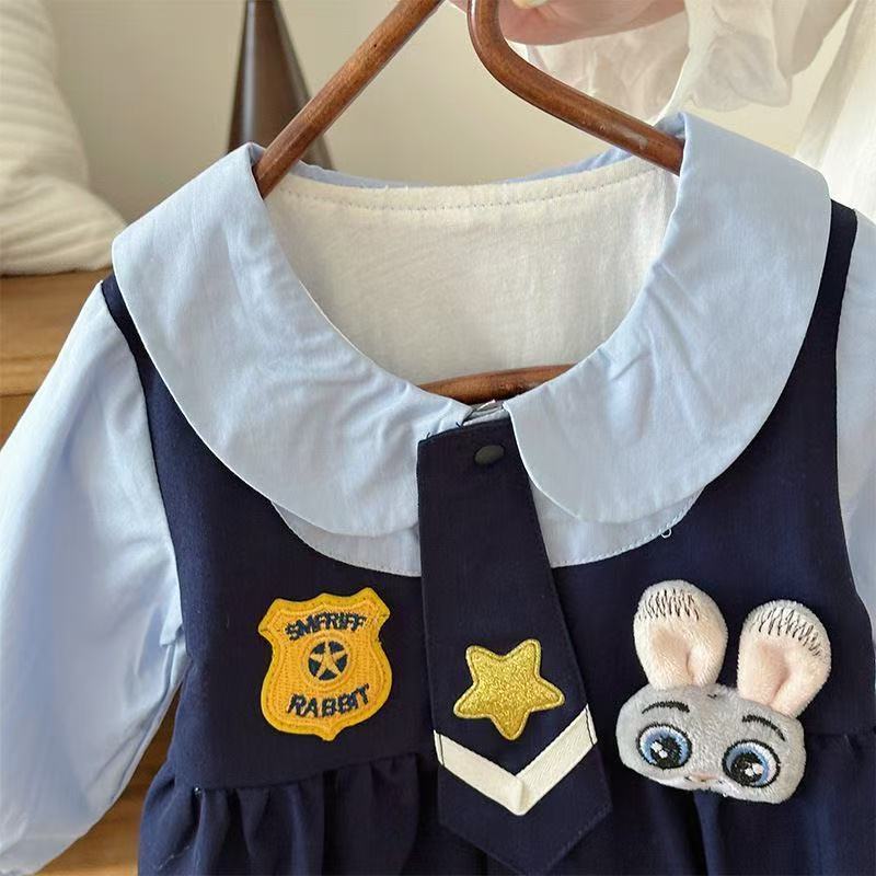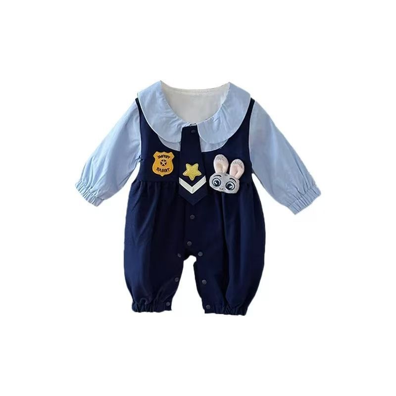 婴儿衣服春秋装 女宝宝连体衣满月百天可爱卡通兔子警官公主连体衣