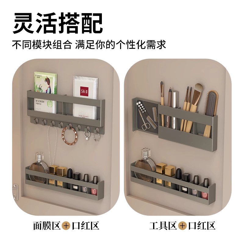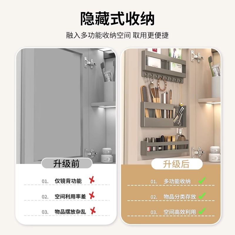 壁挂式 浴室柜门后置物架洗漱台免打孔墙上架子卫生间镜柜门背美妆