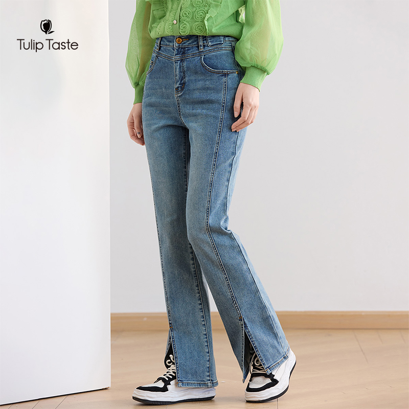 复古风高级感微喇裤 新款 修身 2025年冬季 高腰喇叭裤 朗姿气质牛仔裤