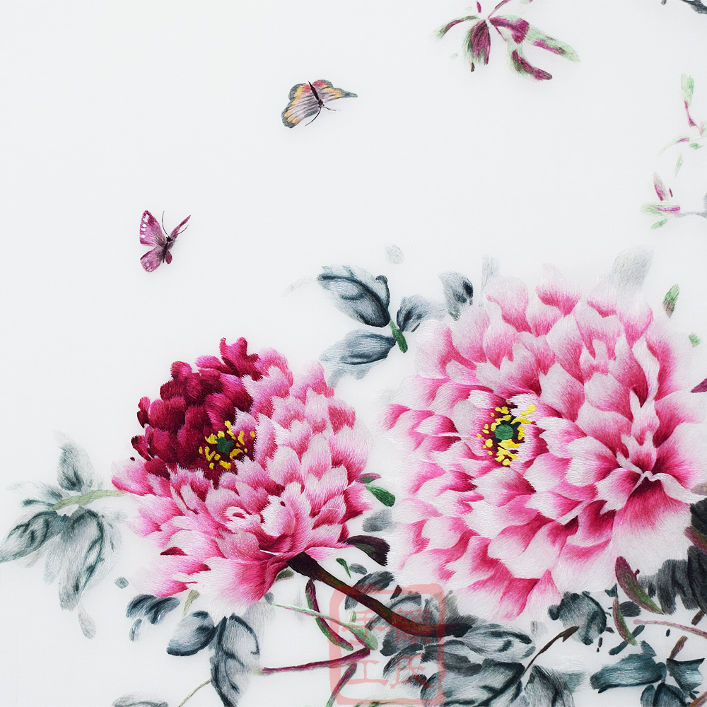 客厅卧室走廊装 新中式 蝶恋花 饰刺绣画三 75顾氏手工刺绣牡丹