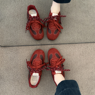 百搭小众设计感轻便休闲运动鞋 环球红色德训鞋 秋季 2025新款 潮 女款