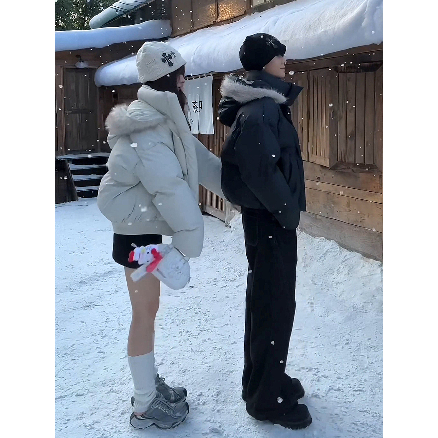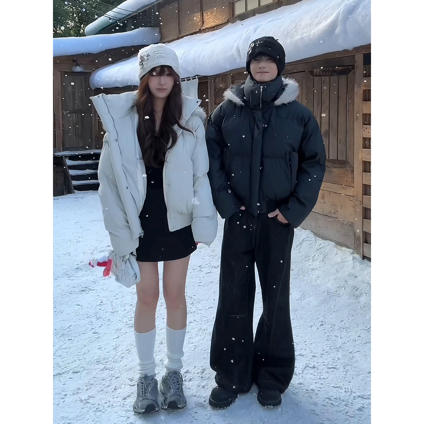 加厚面包服痞帅潮牌美式 毛领羽绒服男冬季 棉衣 短款 cleanfit情侣装