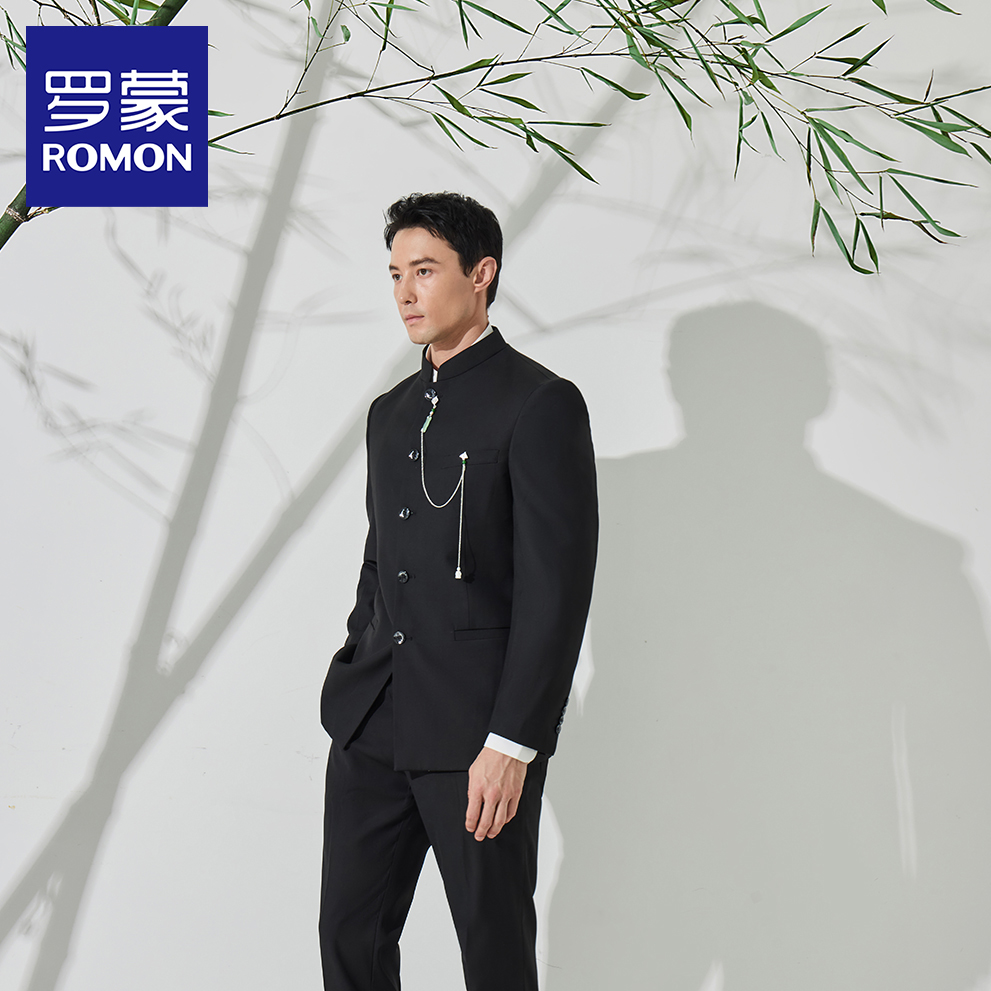 高级感国风立领青年中山装 罗蒙新中式 订婚婚礼西装 西服套装 男士