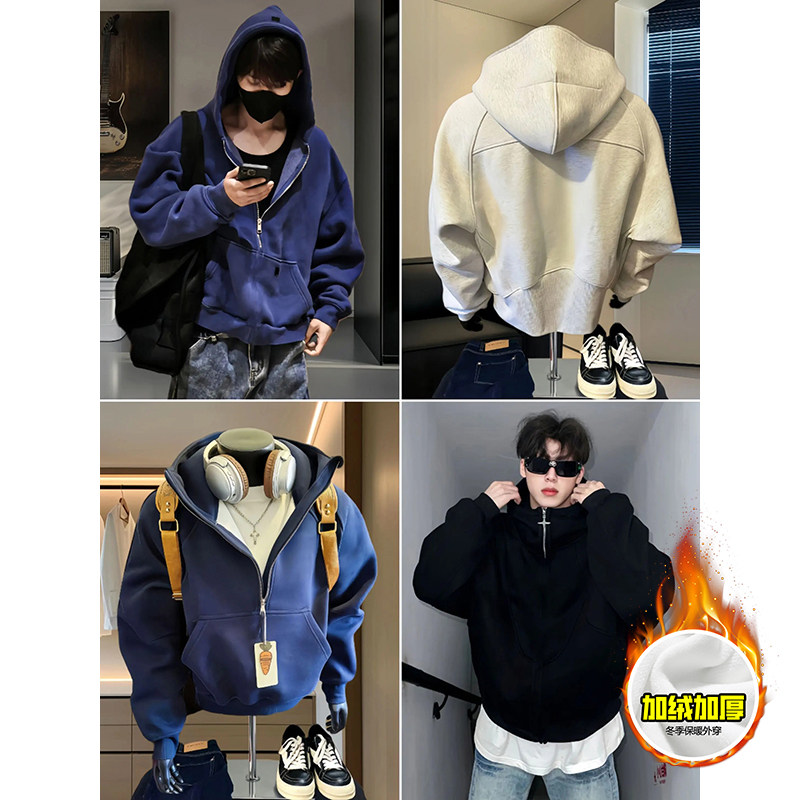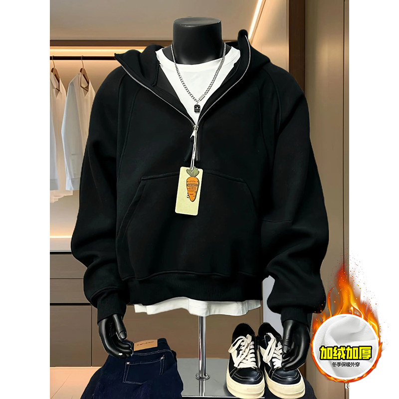 小众解构外套cleanfit重磅硬挺连帽衫 秋季 半拉链立领卫衣男款 美式