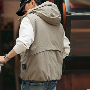 宇透90鸭绒羽绒马甲男2025秋冬新款 背心 加厚保暖连帽户外机能工装