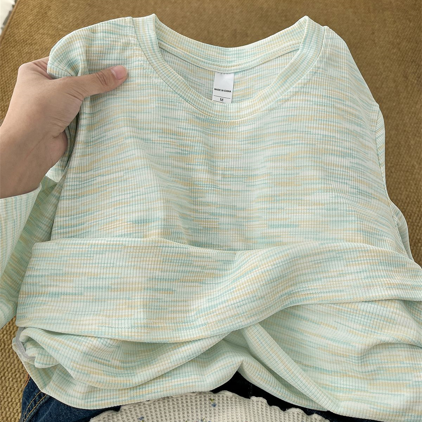 内搭打底衫 韩版 设计感小众上衣 T恤女春秋修身 ins超火扎染条纹长袖