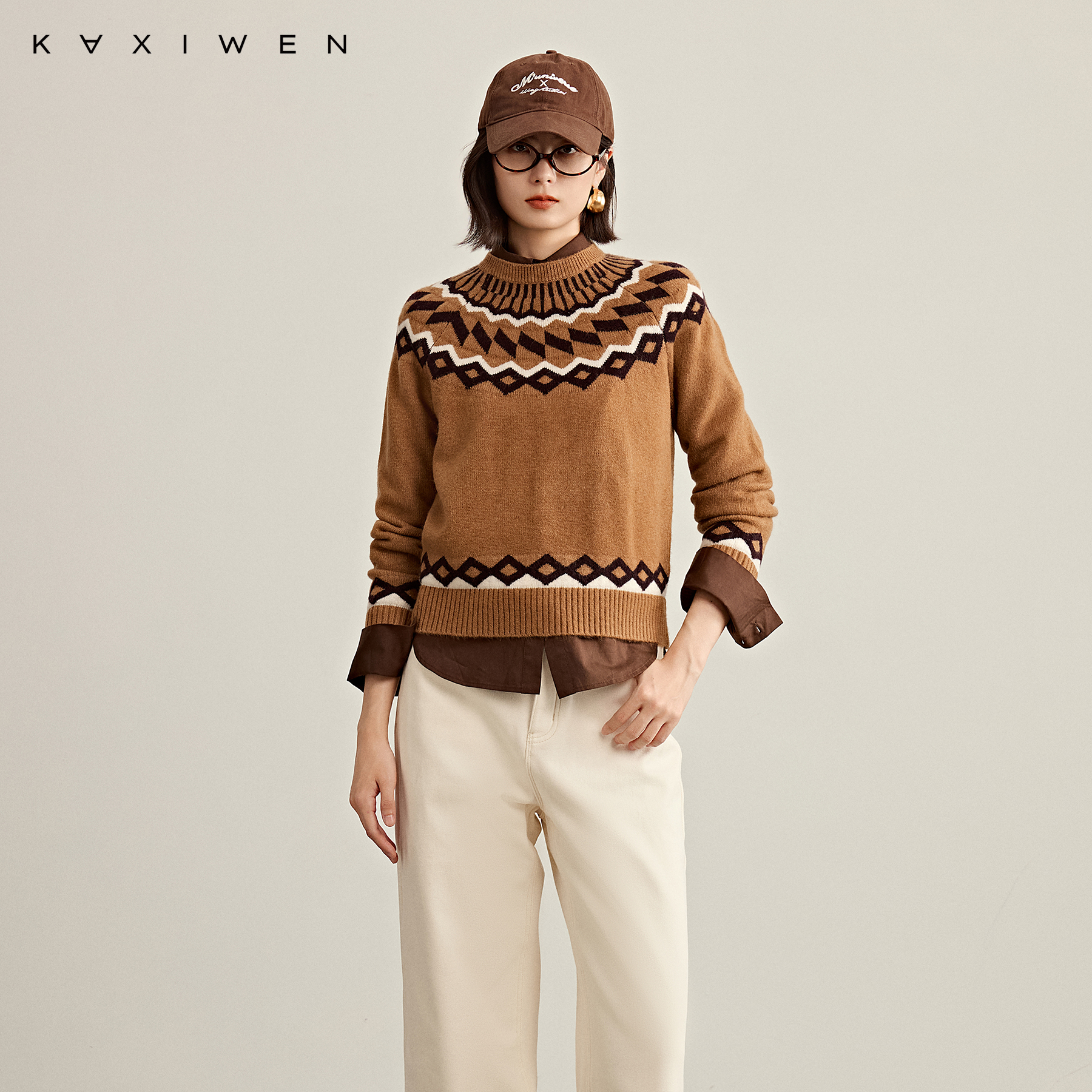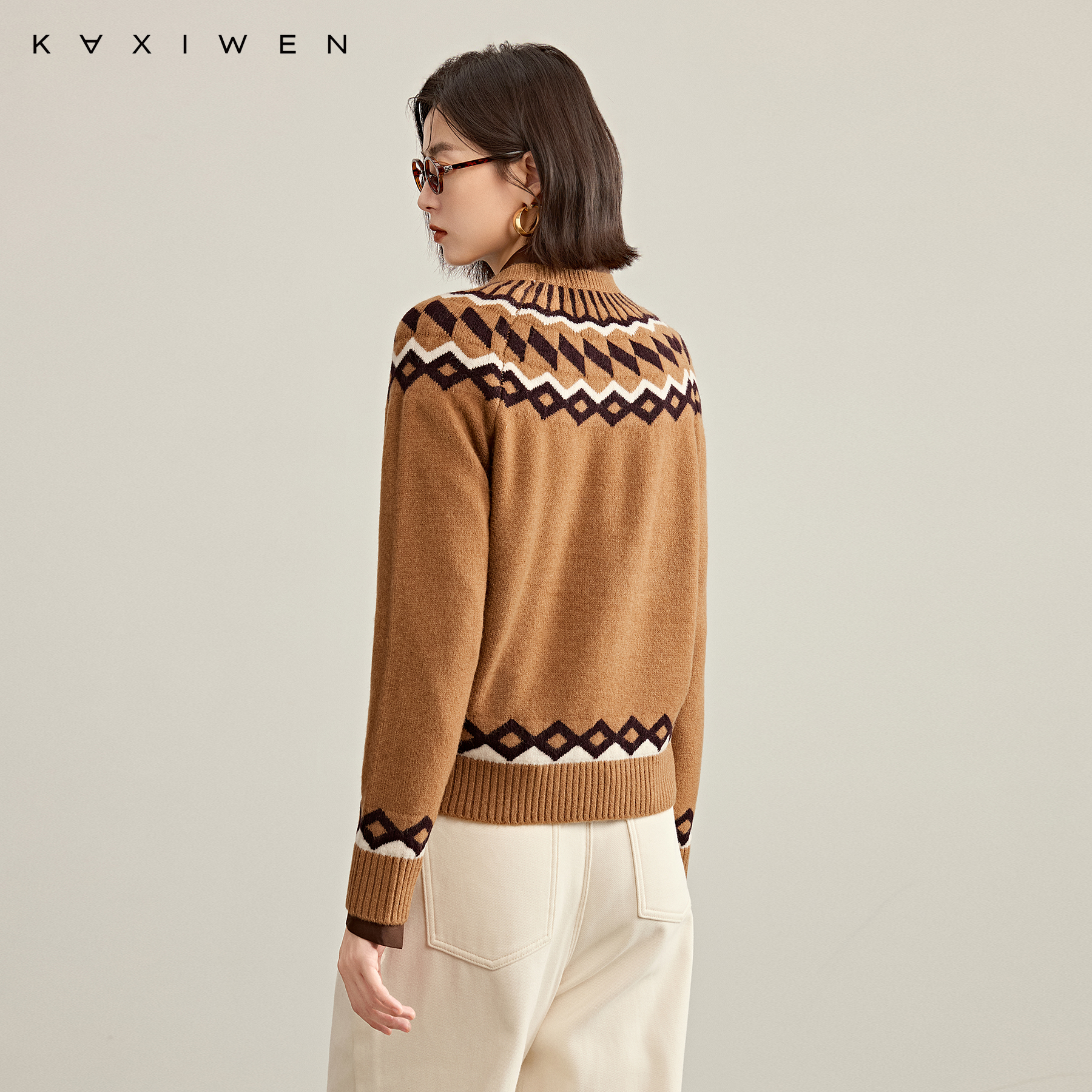 佧茜文费尔岛波西米亚风针织衫 圆领套头气质毛衣女 2025秋冬新款