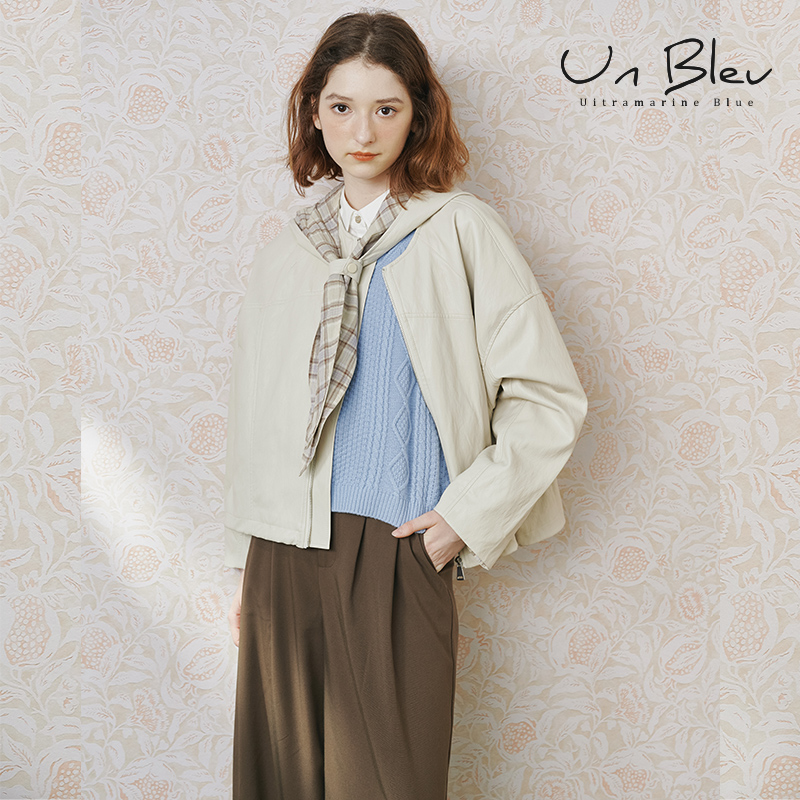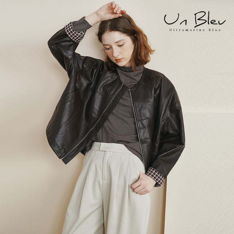 unbleu皮衣外套女酷飒风早秋新款 可拆卸帽巾两件套上衣 2025女装