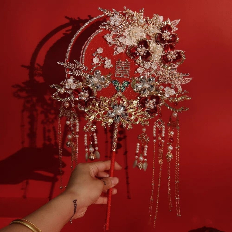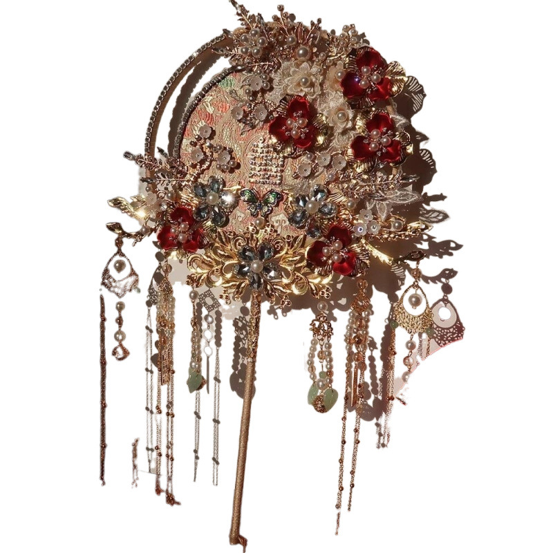 团扇结婚新娘秀禾diy材料包中式 出嫁喜扇明制手工婚扇子成品双面
