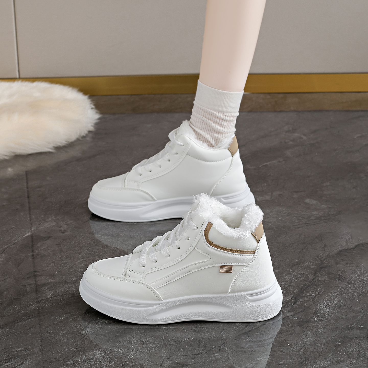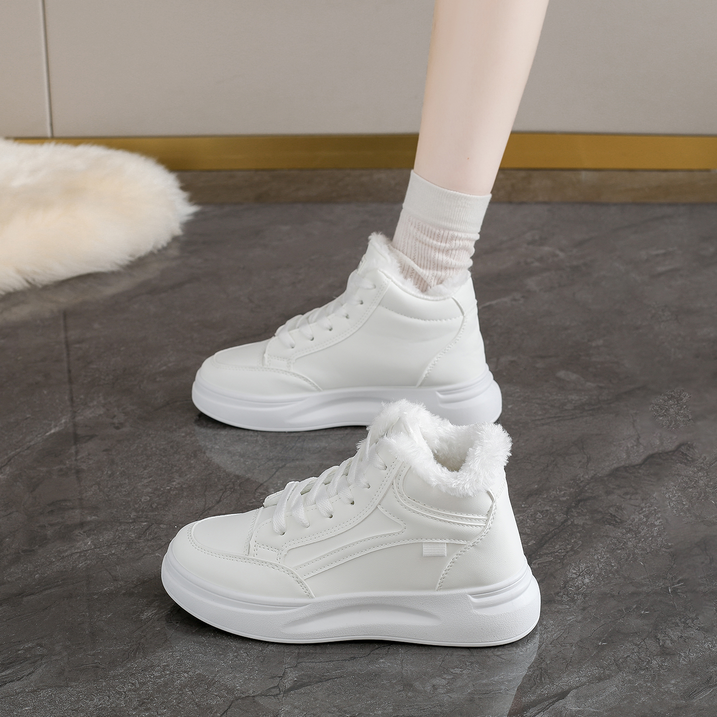 皮毛一体户外保暖加绒加厚棉鞋 冬季 女 2025新款 环球厚底雪地靴女款