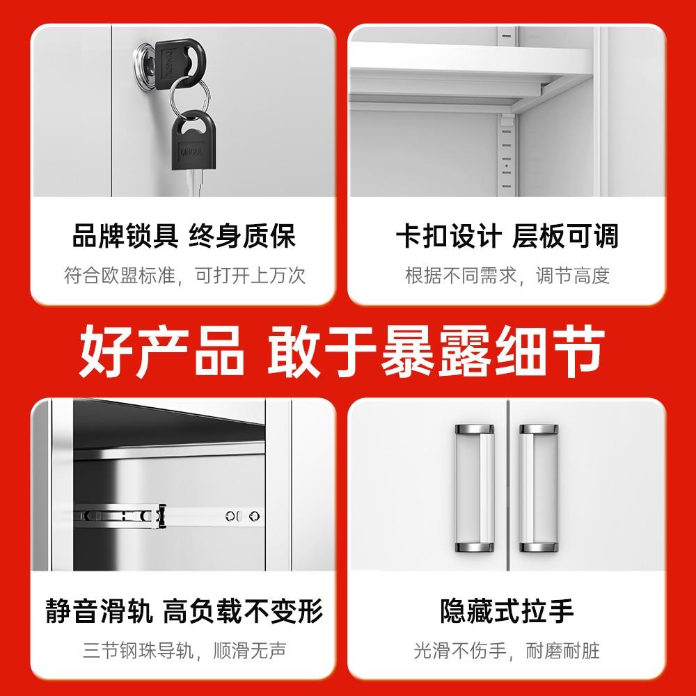 铁皮文件柜办公室资料收纳柜不锈钢二斗矮柜带锁抽屉小柜子储物柜