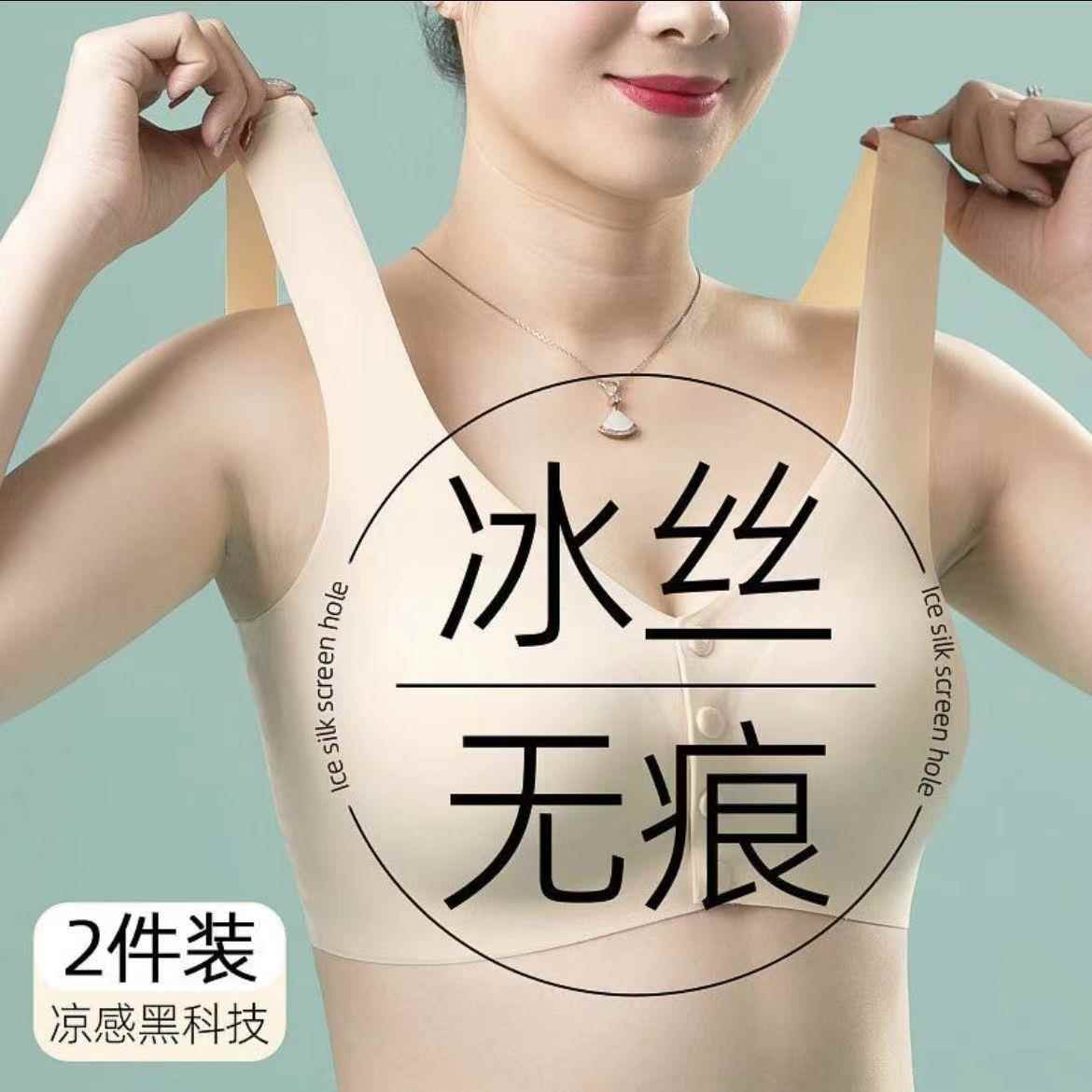冰丝无钢圈胸罩夏季 薄款 前扣大码 妈妈内衣文胸中老年人妇女背心式