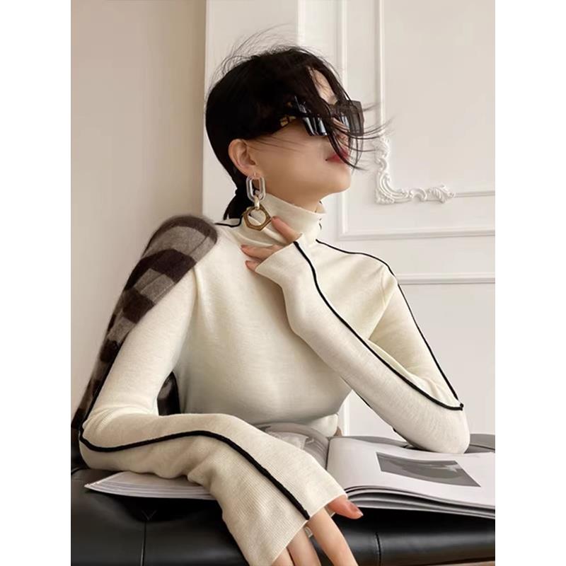 撞色内搭毛衣法式 女2025秋冬新款 轻1012r 黑色高领针织打底衫 时尚