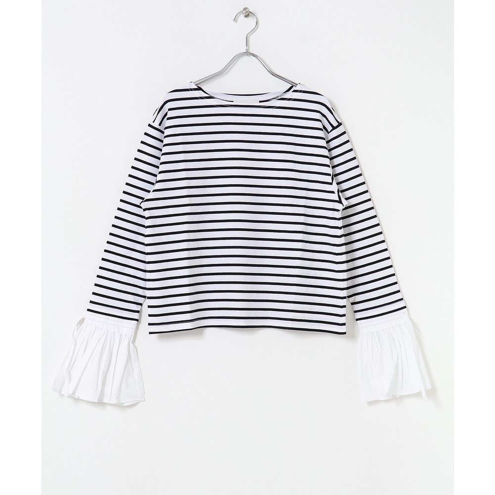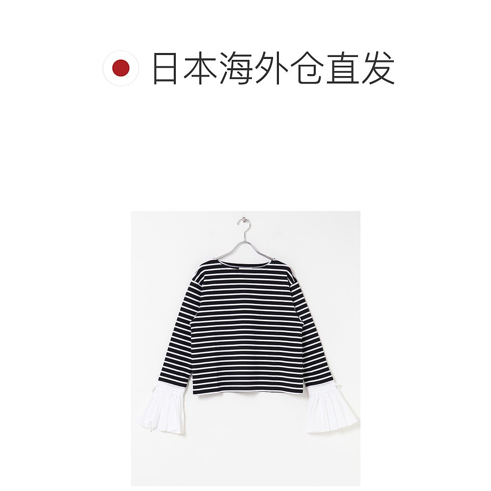 宽松半袖 女装 竖条纹T恤 花边喇叭袖 1h可退 设计 日本直邮Mewl