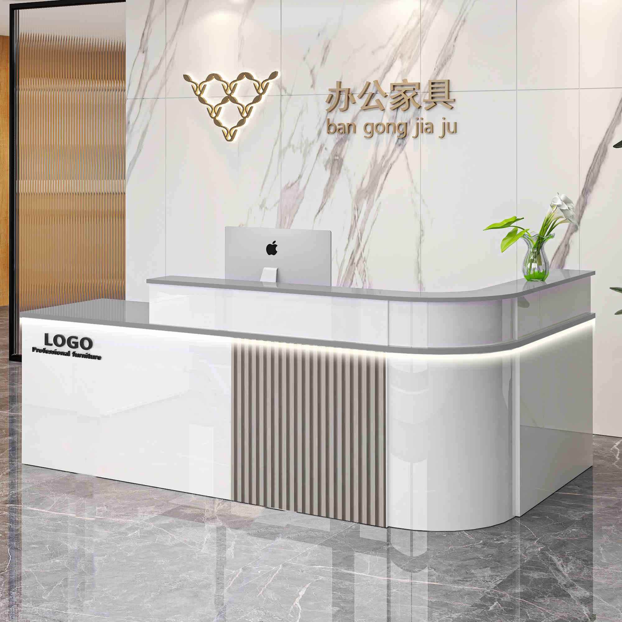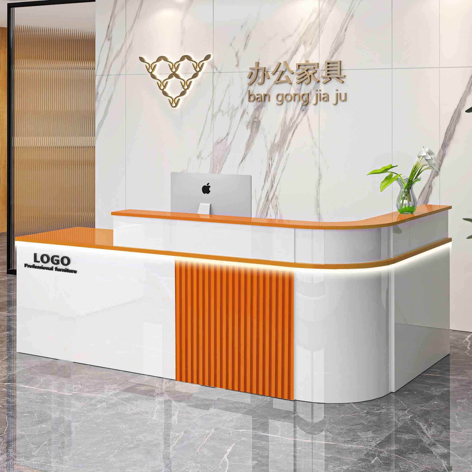 收银台新中式 公司前台吧台接待台柜台店铺小型圆弧拐角商铺办公桌