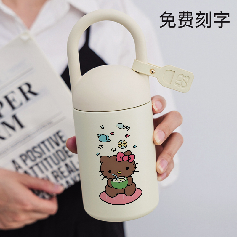 黑皮kitty凯蒂猫手提保温杯316学生卡通可爱水杯子送女孩生日礼物