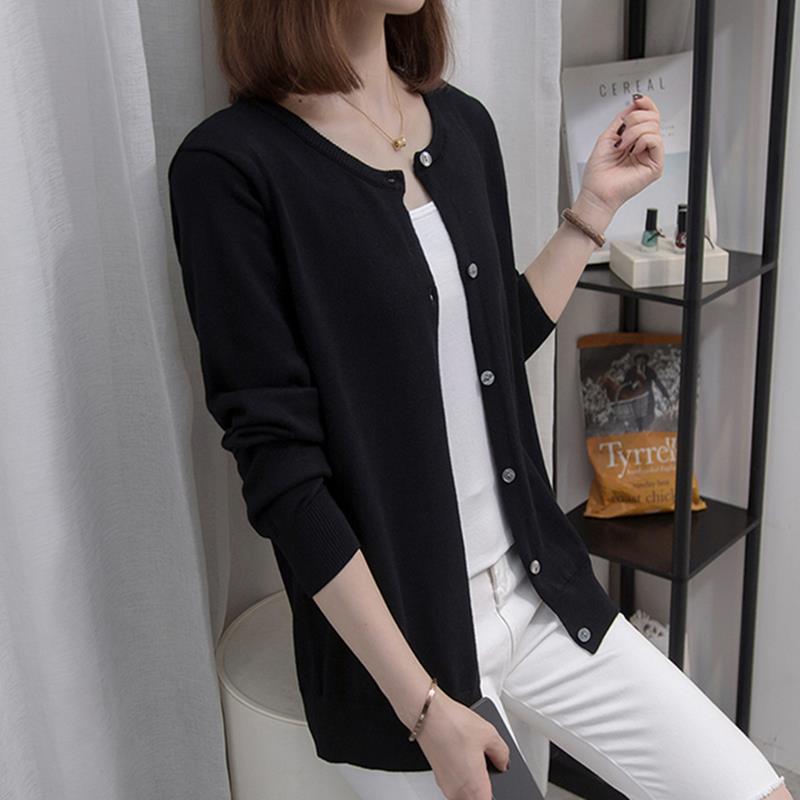 女修身 女薄羊毛毛衣纯色小外套上衣春秋新款 针织开衫 螺纹圆领短款