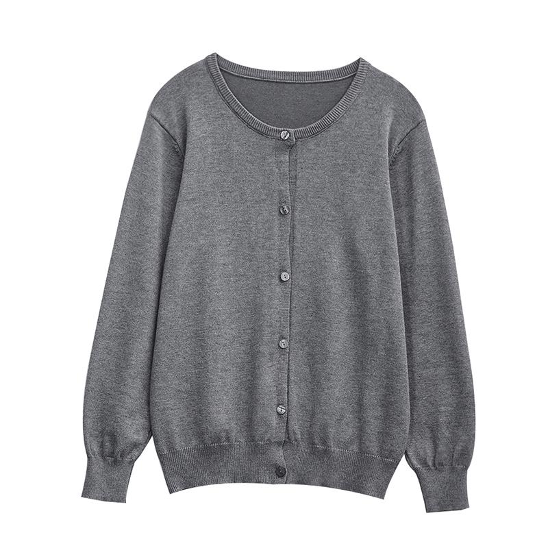 蓝色毛衣外套 上衣灰色圆领全棉线薄款 纯棉bm针织开衫 女早秋长袖