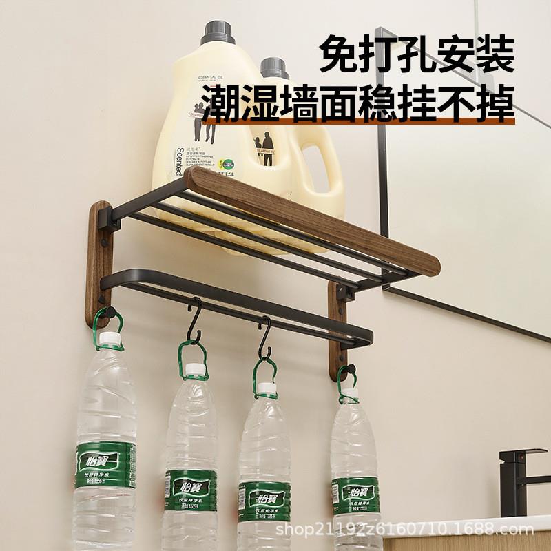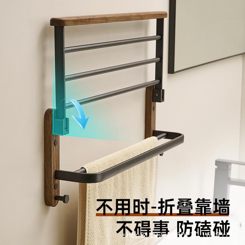 胡桃木毛巾架卫生间免打孔浴室置物架厕所洗手间墙上高端浴巾架子