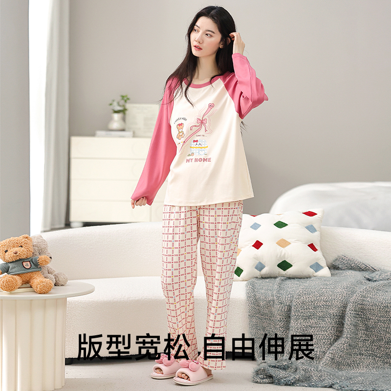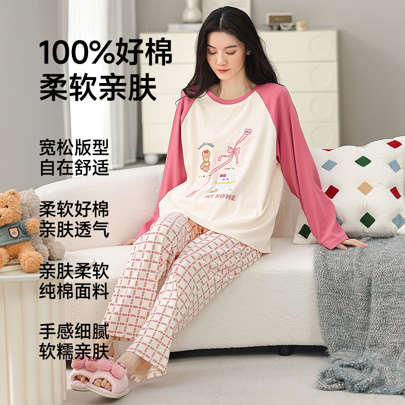 长袖 全棉家居服套装 睡衣女款 女士春季 纯棉套头宽松大码 芬腾春秋季