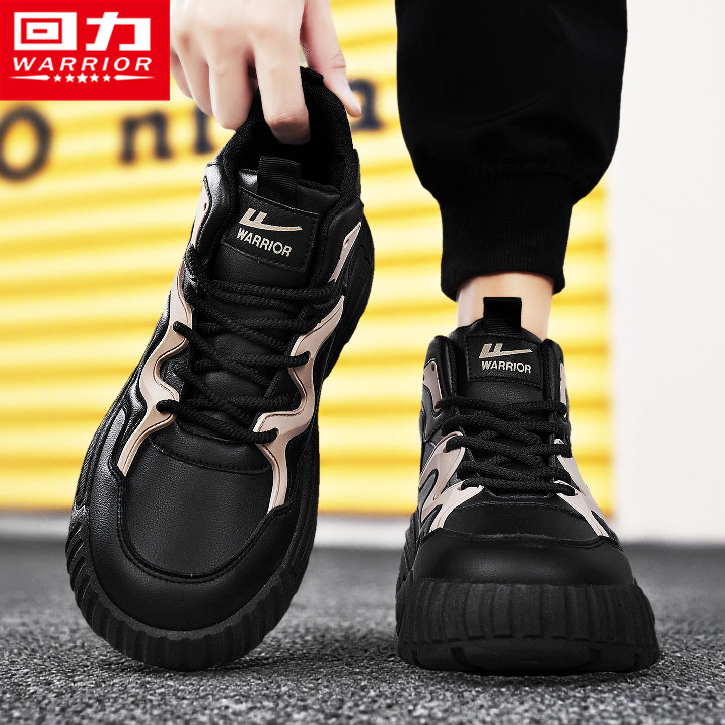 潮牌运动跑步增高休闲学生小白厚底防滑老爹潮鞋 回力高帮男鞋 秋季