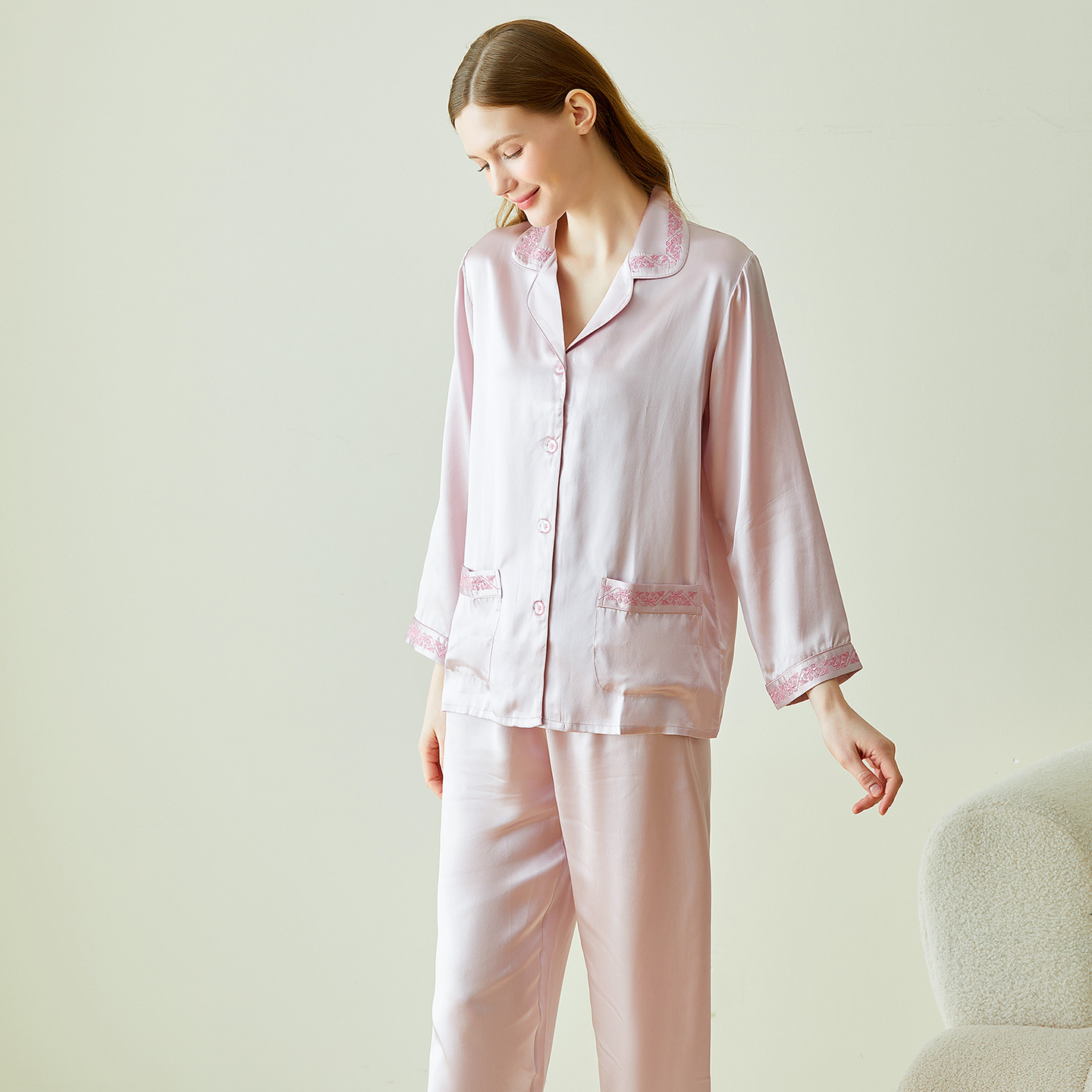 居家服套装 长裤 真丝睡衣2件套 衬衫 西子美绸100%桑蚕丝长袖