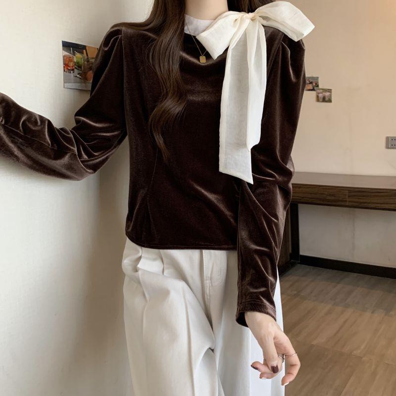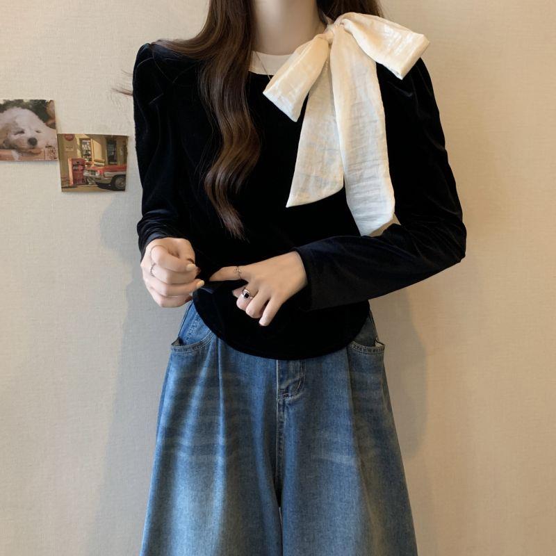 纯棉弹力显瘦 内搭秋冬款 全棉时代女士T恤女针织长袖 上衣打底衫