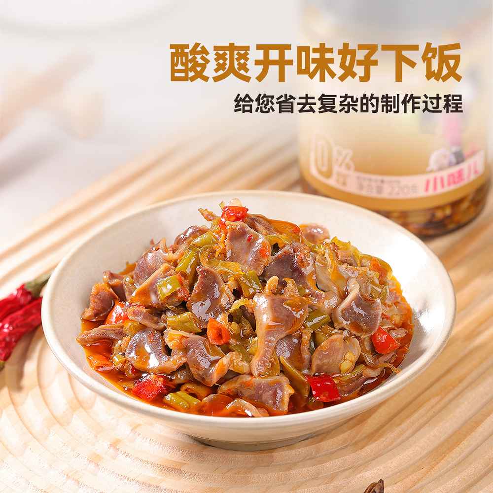 酸辣鸡胗拌饭菜酸豆角湖南特产剁椒辣椒酱下饭菜香辣拌饭酱瓶装