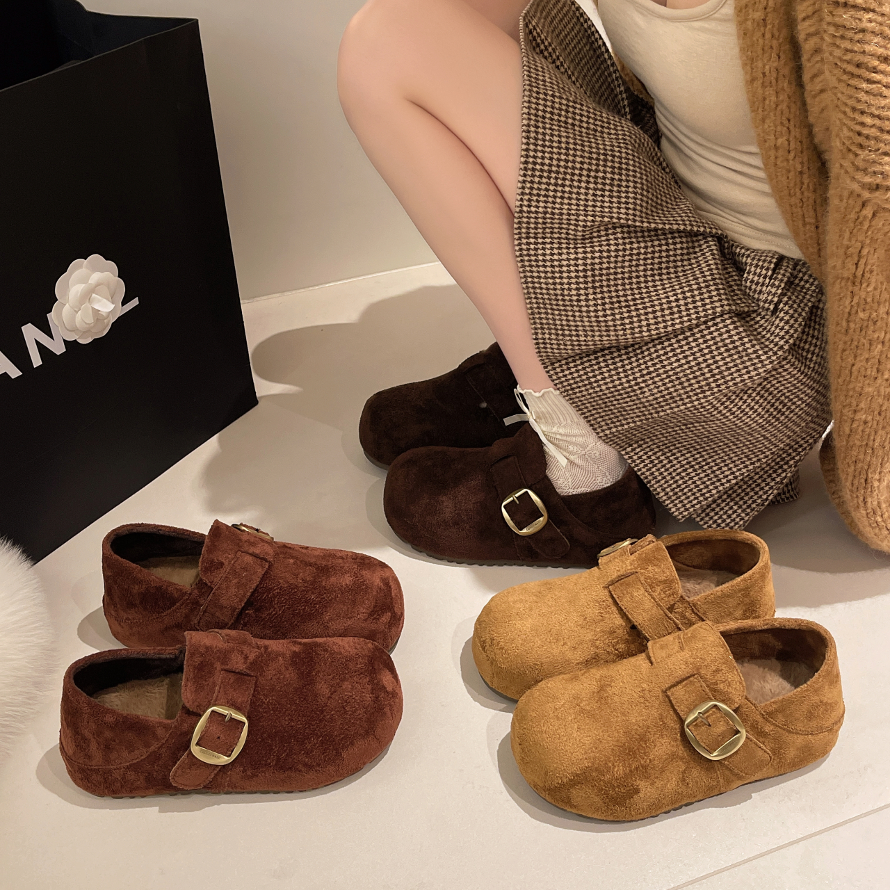 内增高一脚蹬保暖乐福豆豆棉鞋 厚底两穿加绒勃肯鞋 女2025秋冬新款