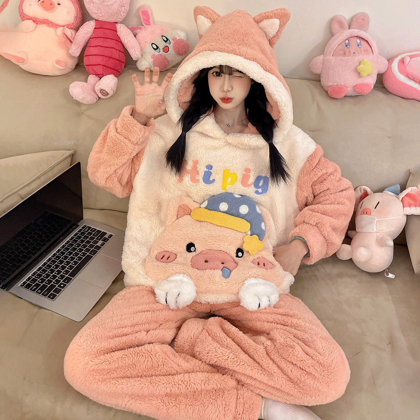 加厚珊瑚绒家居服套装 安之伴半边绒睡衣情侣冬季 林依轮直播间