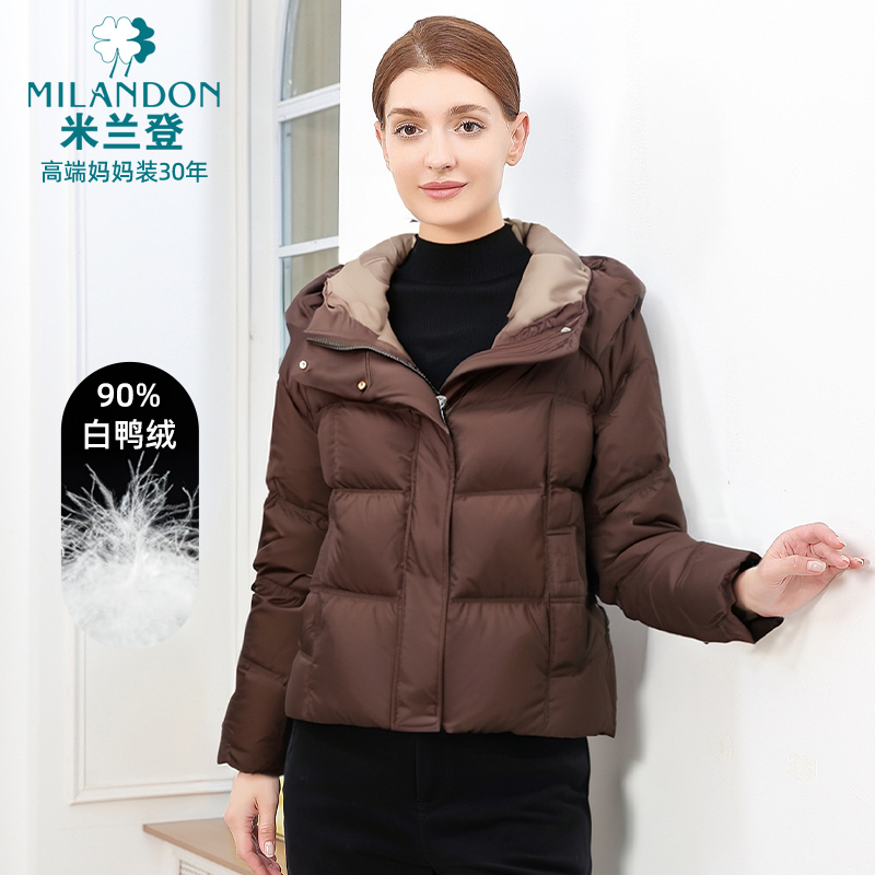 时尚 新款 连帽羽绒服女外套防风保暖 2025年冬季 米兰登中老年妈妈装