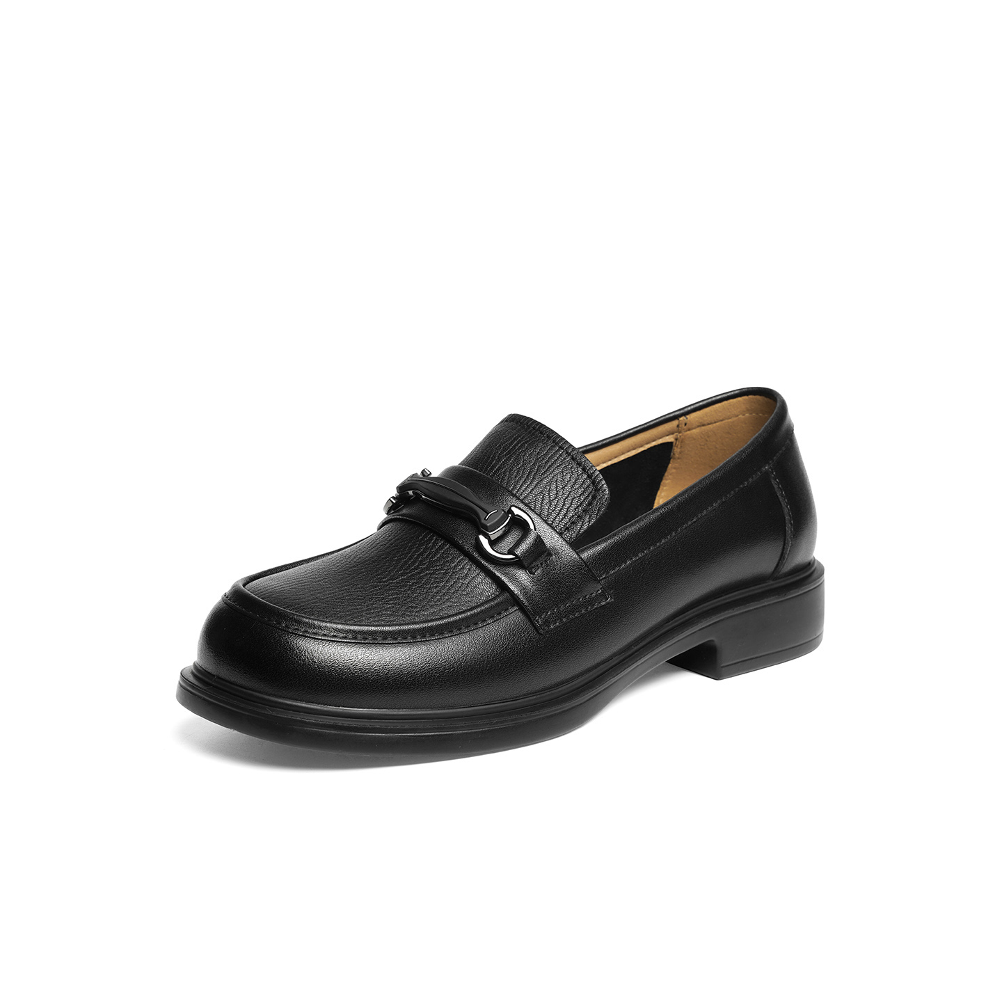 舒适软底一脚蹬单鞋 红蜻蜓黑色乐福鞋 英伦风小皮鞋 新款 女2025秋季