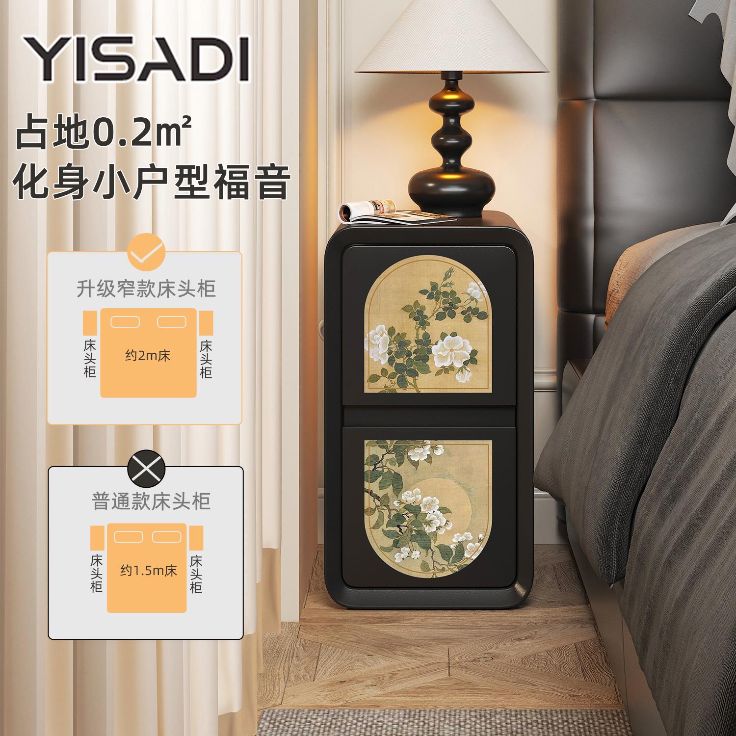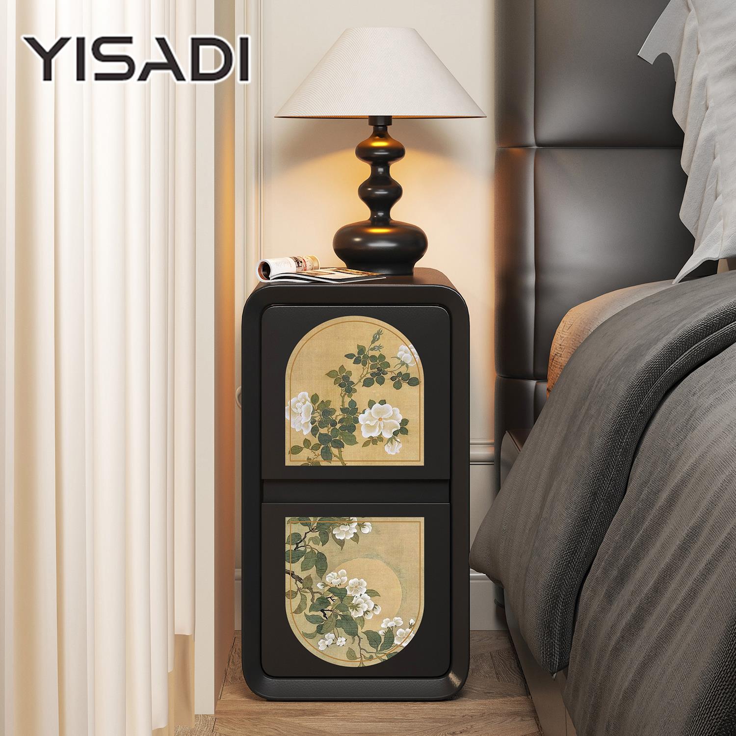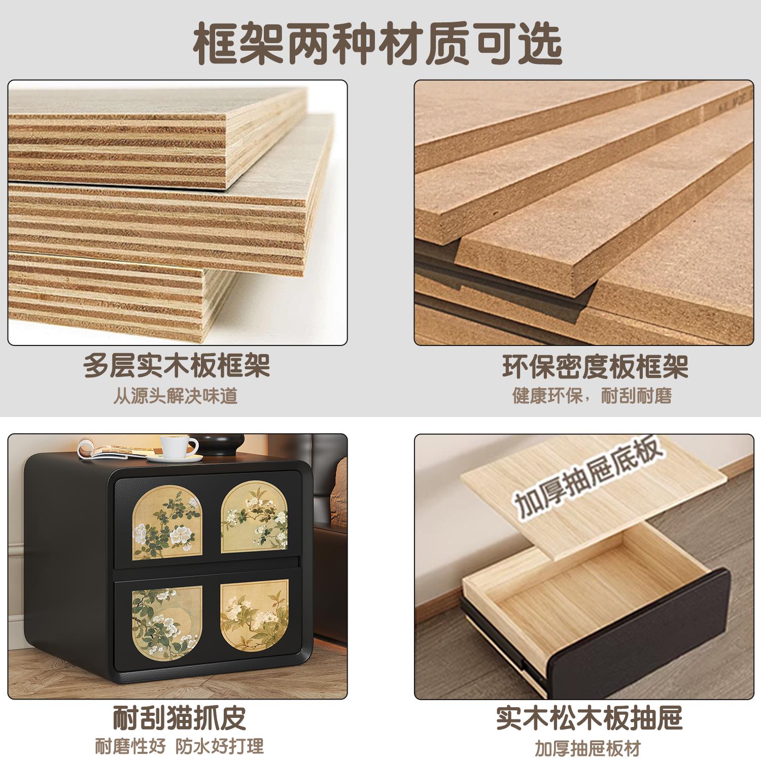 实木黑色中古风小窄床头柜猫抓皮卧室小户型柜床边收纳柜储物柜子