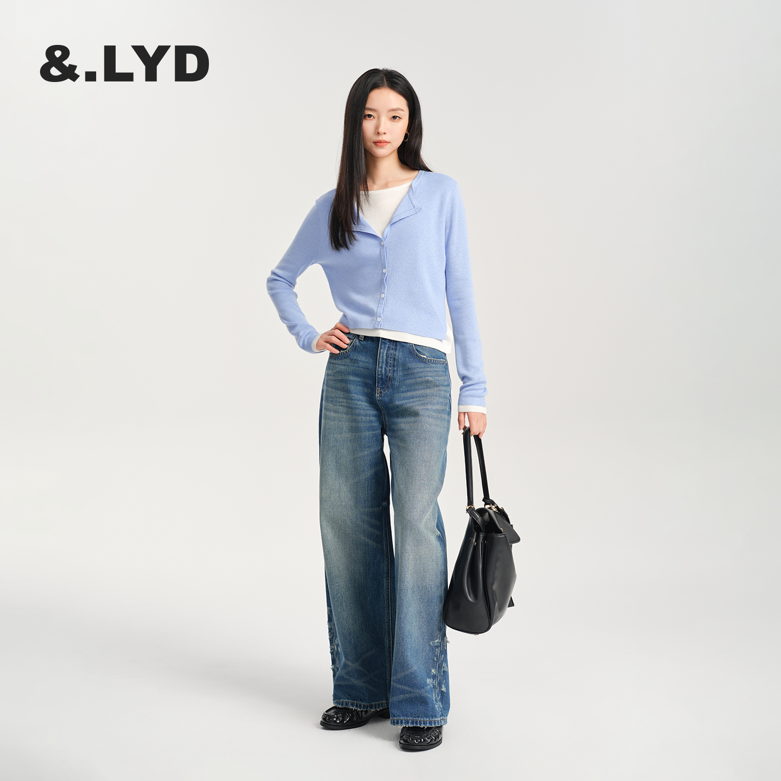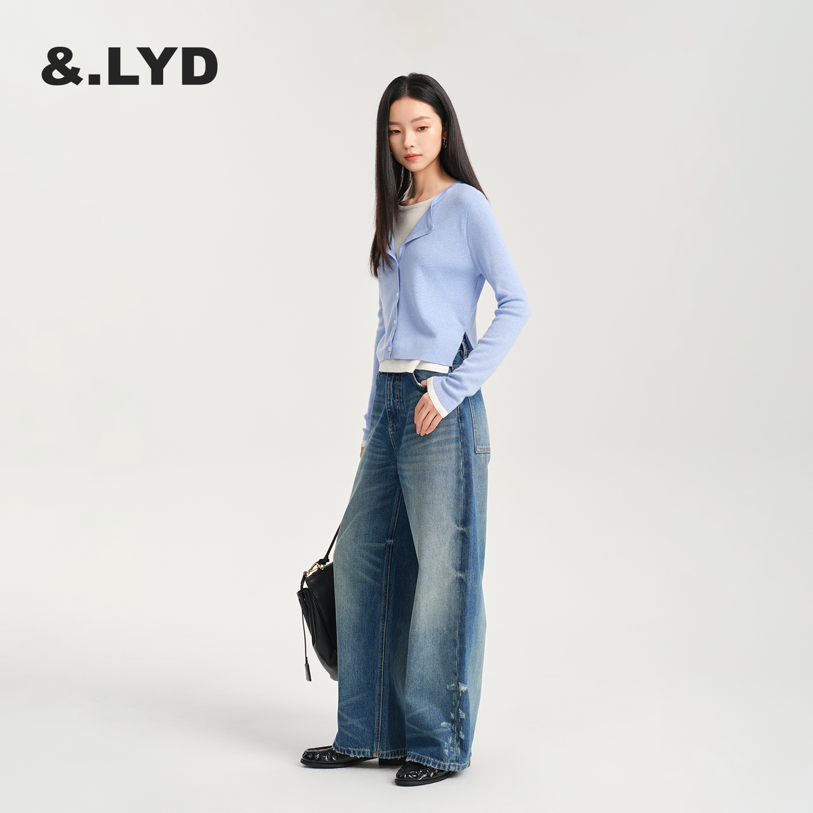 丹宁色修身 新款 显瘦阔腿裤 时尚 王家有鱼 通勤牛仔裤 小个子定制