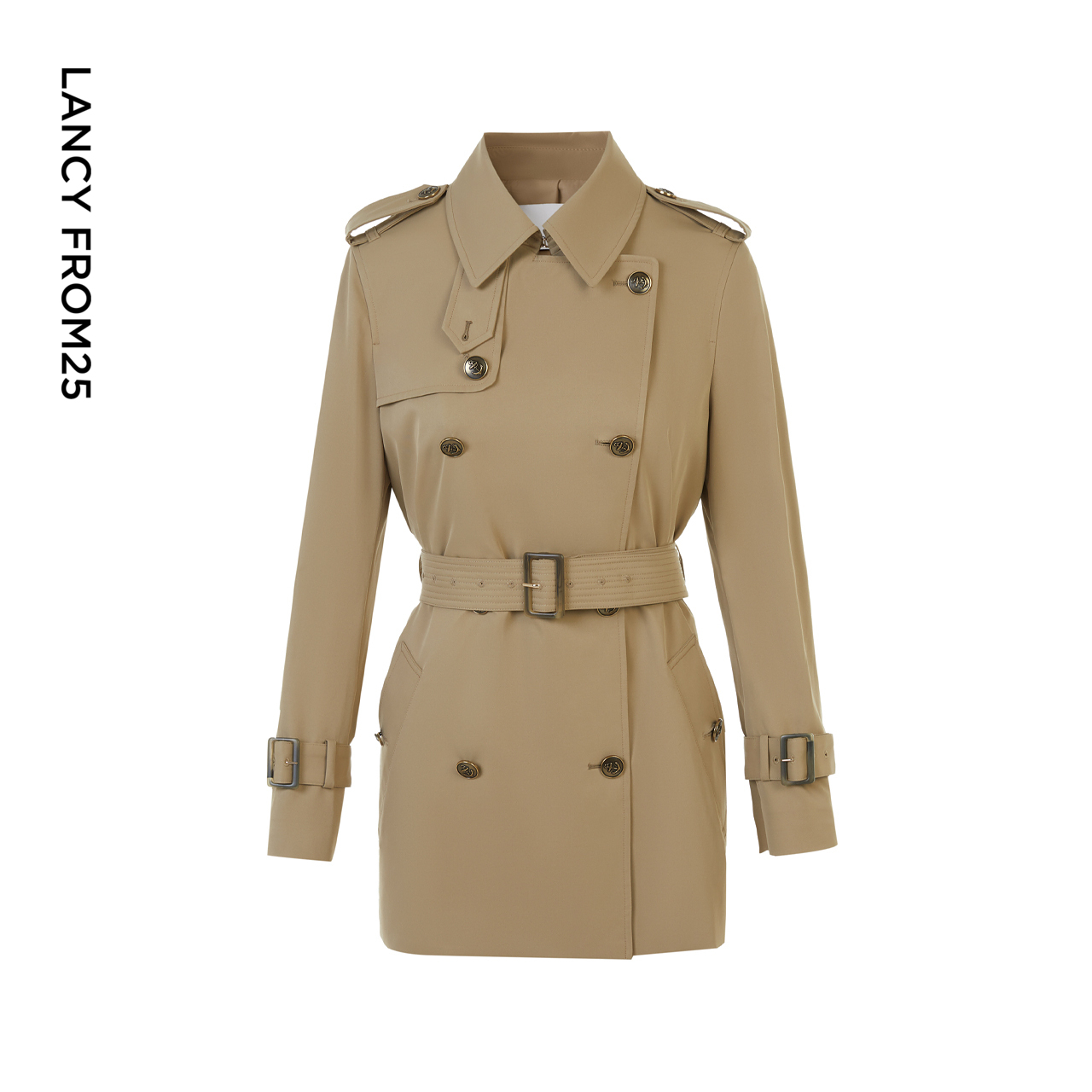 风衣 CUBIC松弛通勤全棉廓形立体翻领抽绳卡其色短款 nana同款