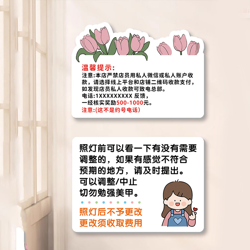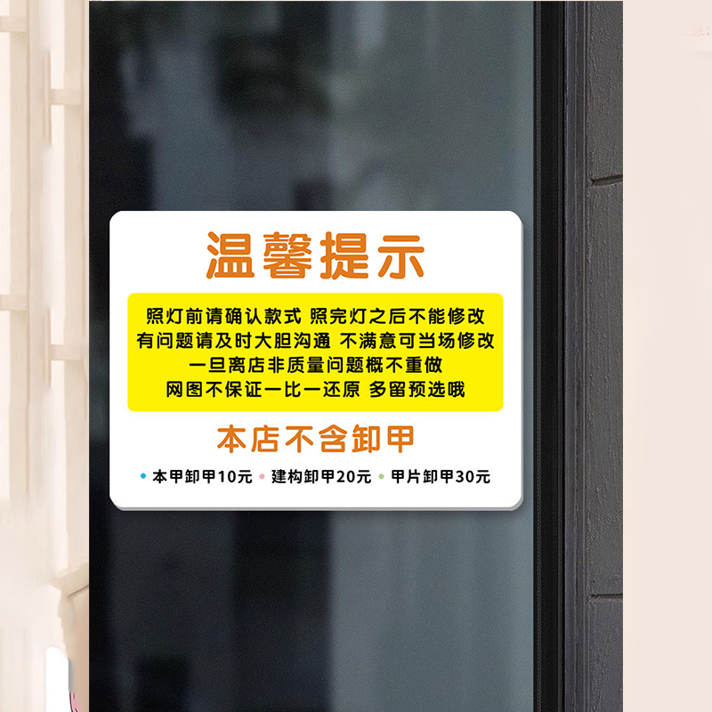 美甲须知美甲温馨提示牌美甲店不改色须知告示牌摆台美甲注意事项
