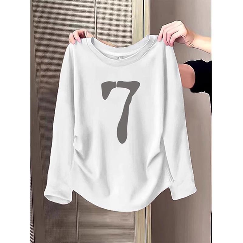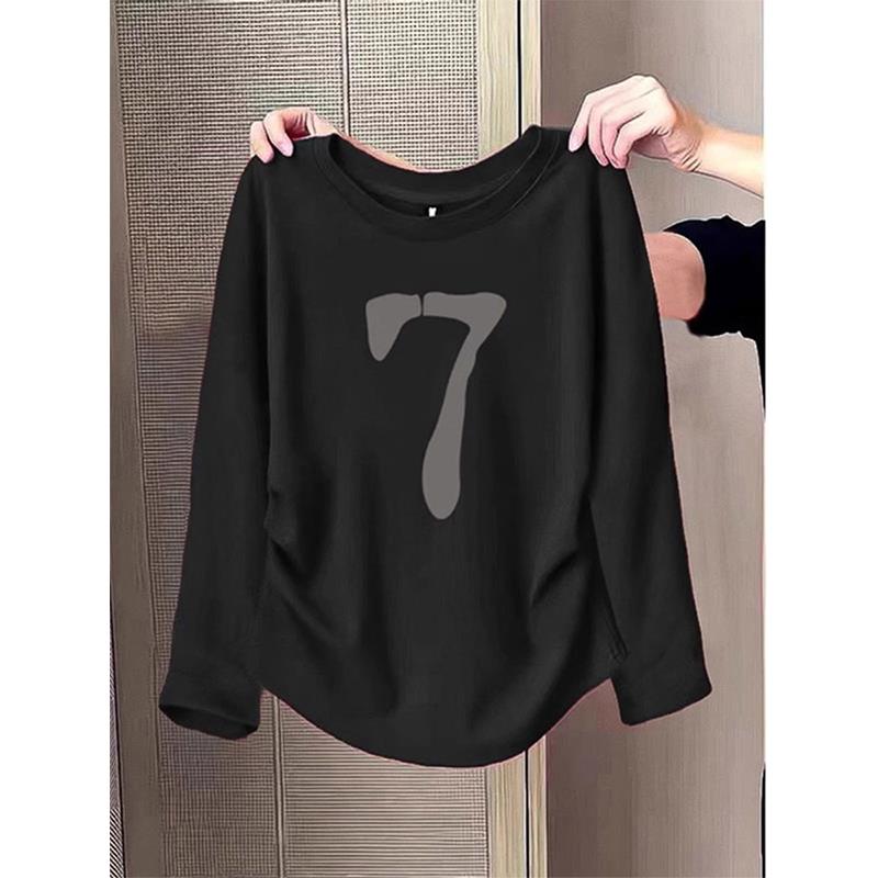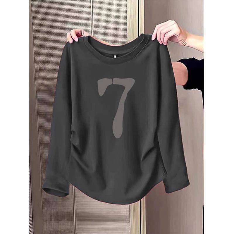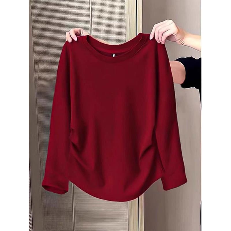 宽松显瘦长袖 内搭大码 T恤1009u 女2025新款 秋冬安可拉红圆领打底衫