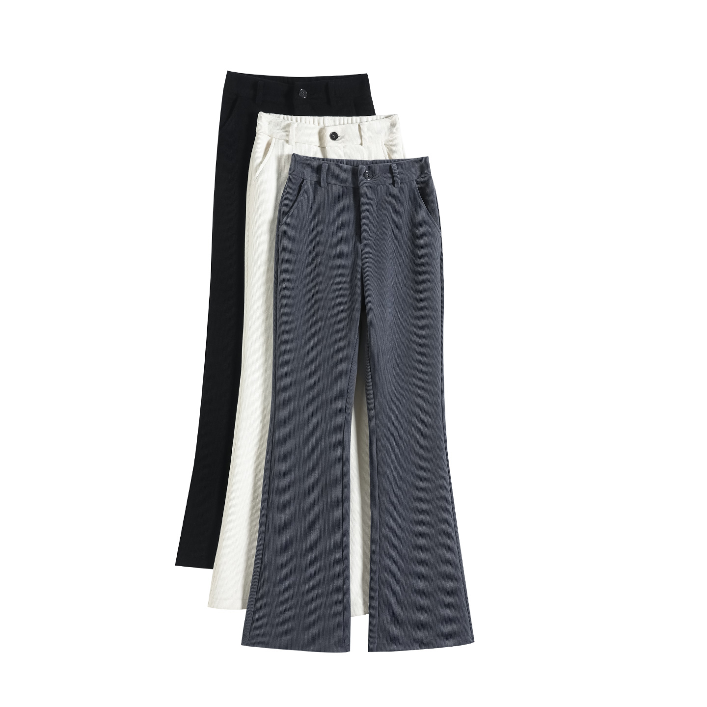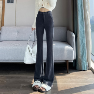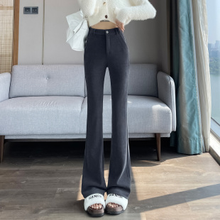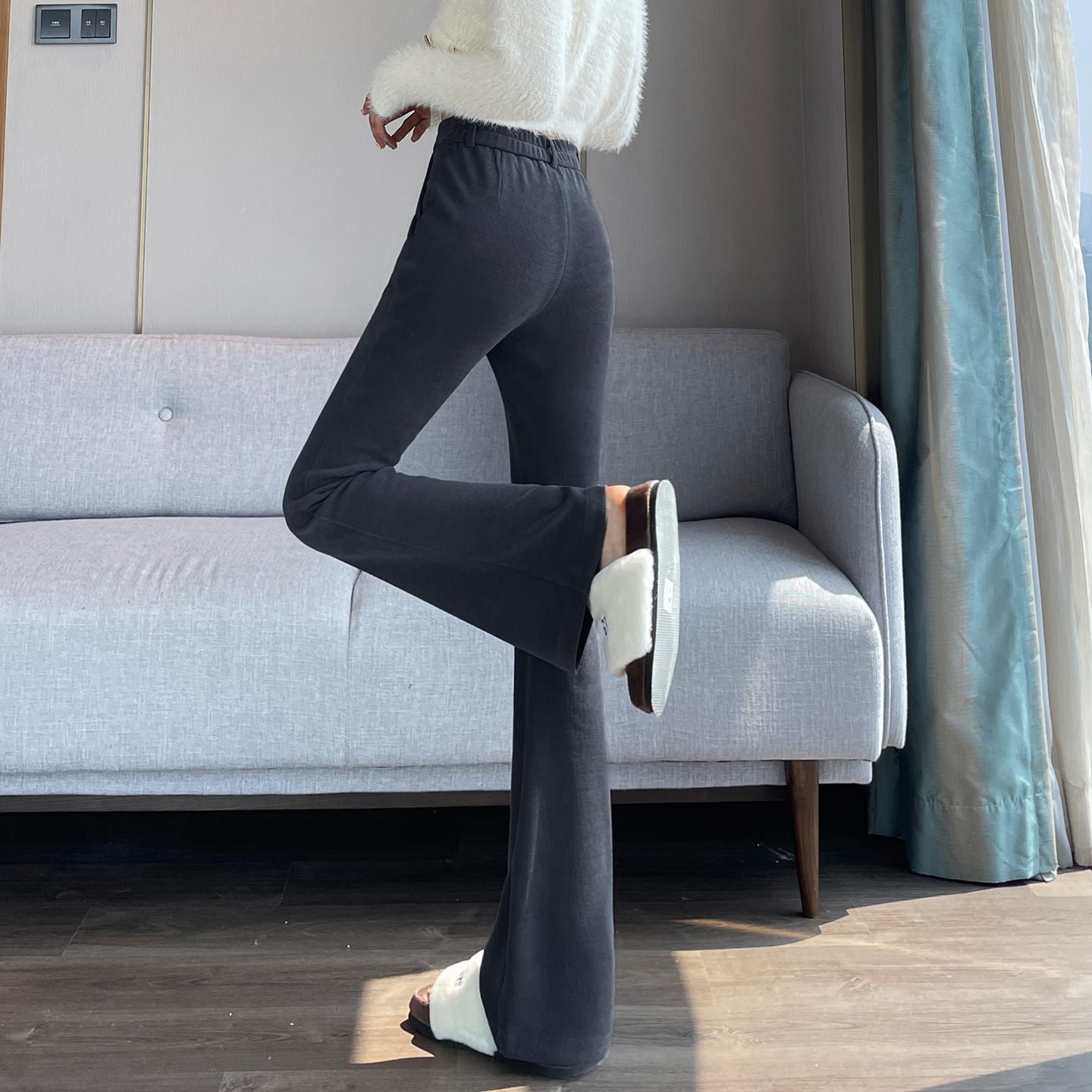 灰色松紧高腰垂感显瘦小个子气质通勤马蹄喇叭长裤 微喇裤 女春秋款