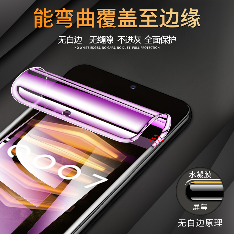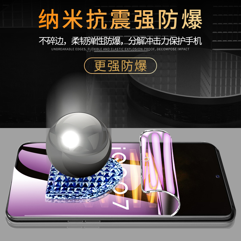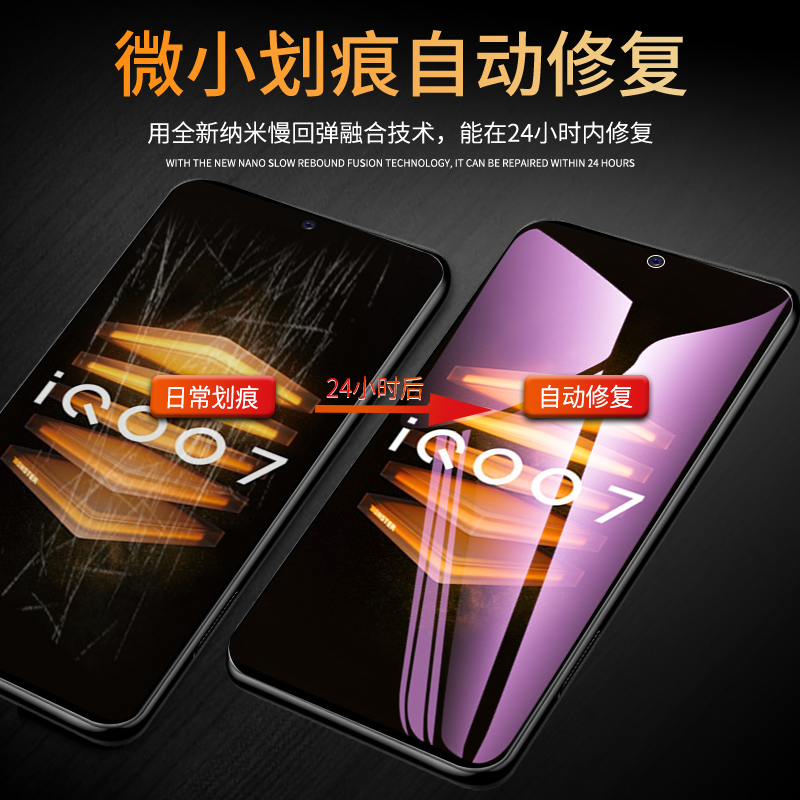 适用iQOO7水凝膜全屏覆盖抗蓝光防摔屏保iq007手机贴膜高清保护无白边vivo钢化膜全包边防指纹防爆纳米软膜5G