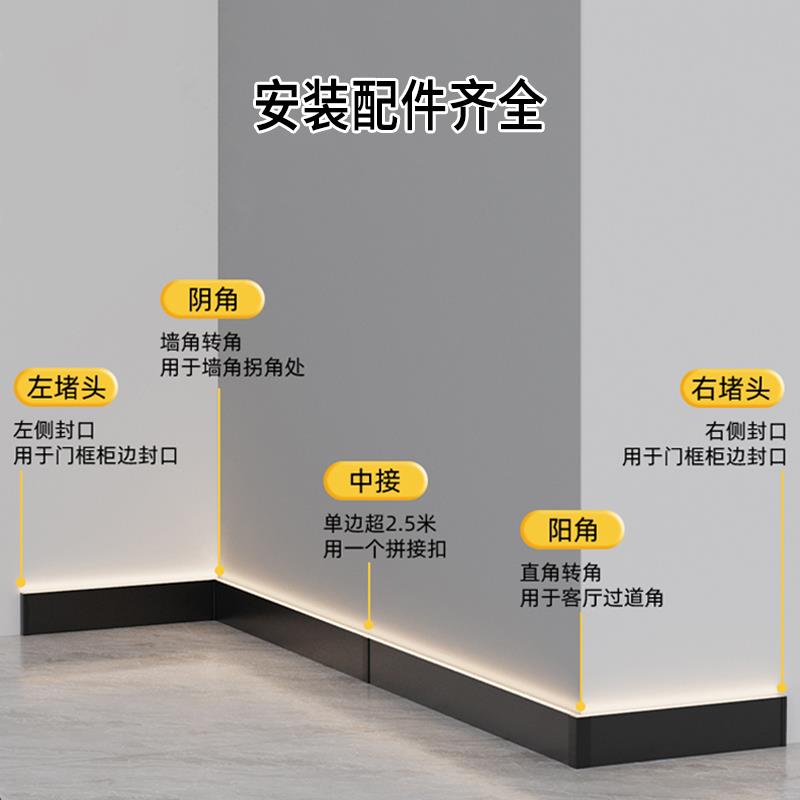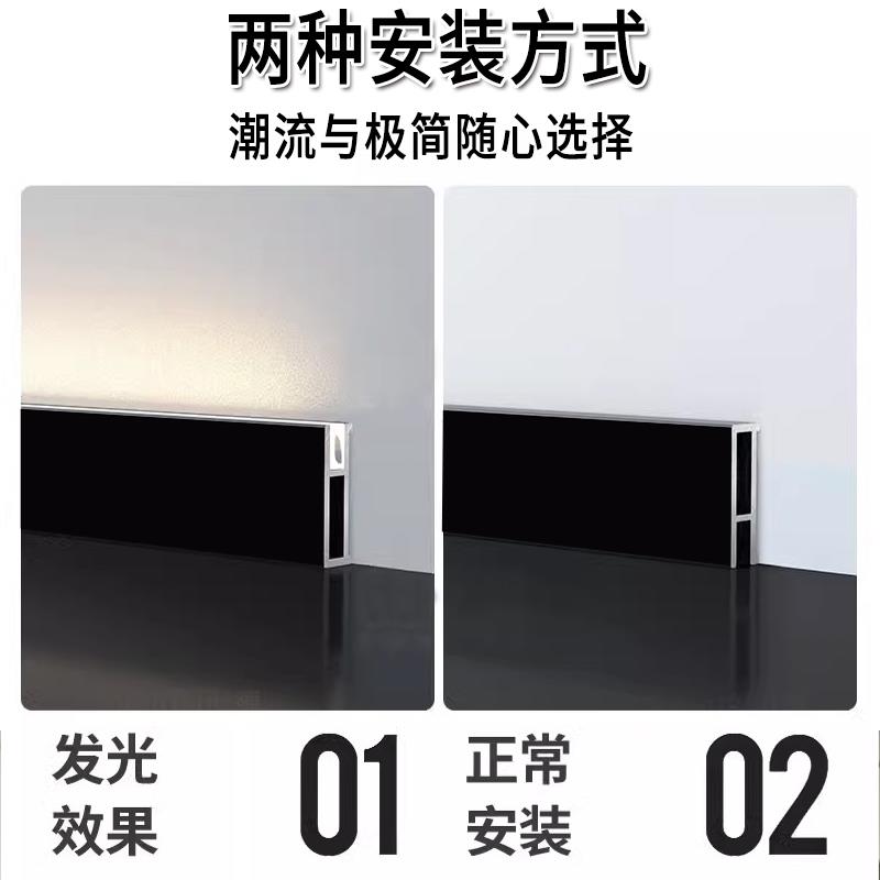 极窄无痕铝合金灯带踢脚线超薄极简上发光地脚线金属明装 贴脚线 款