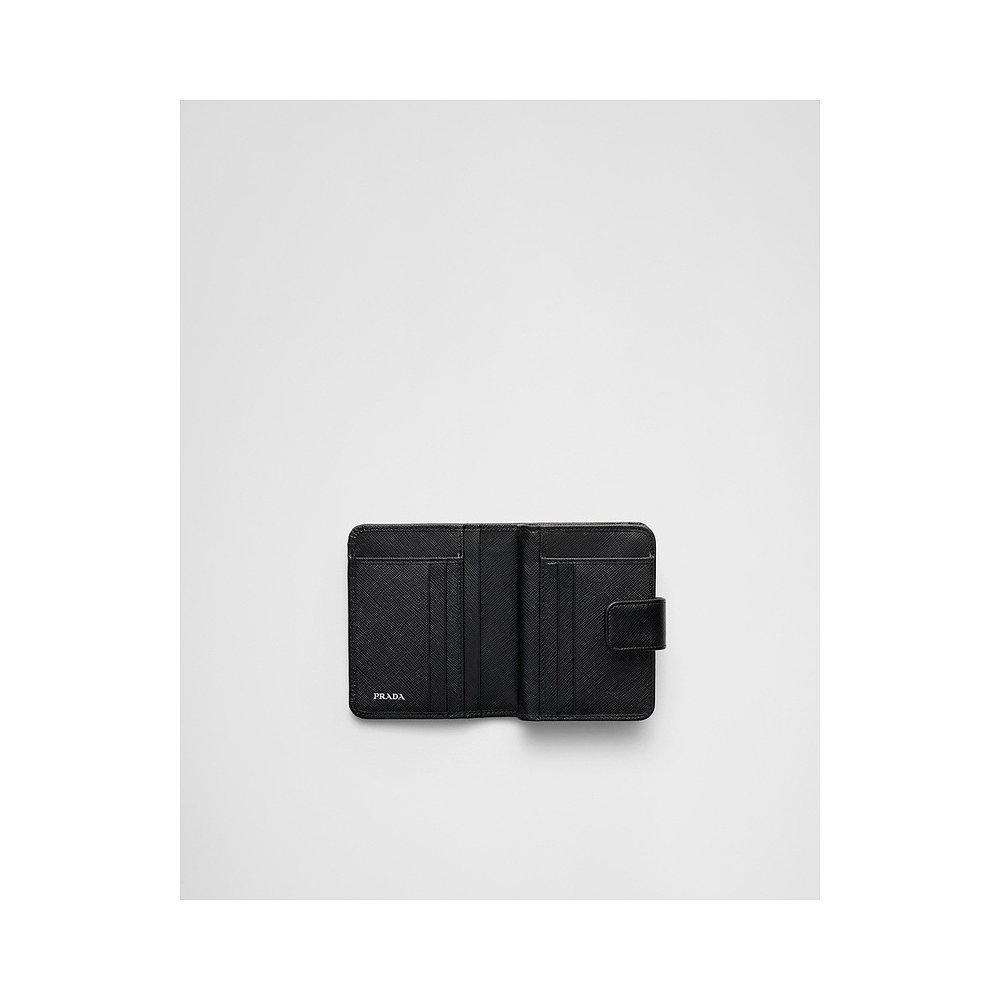自营欧洲直邮Prada普拉达 Saffiano女士黑色小牛皮三角标识小号按