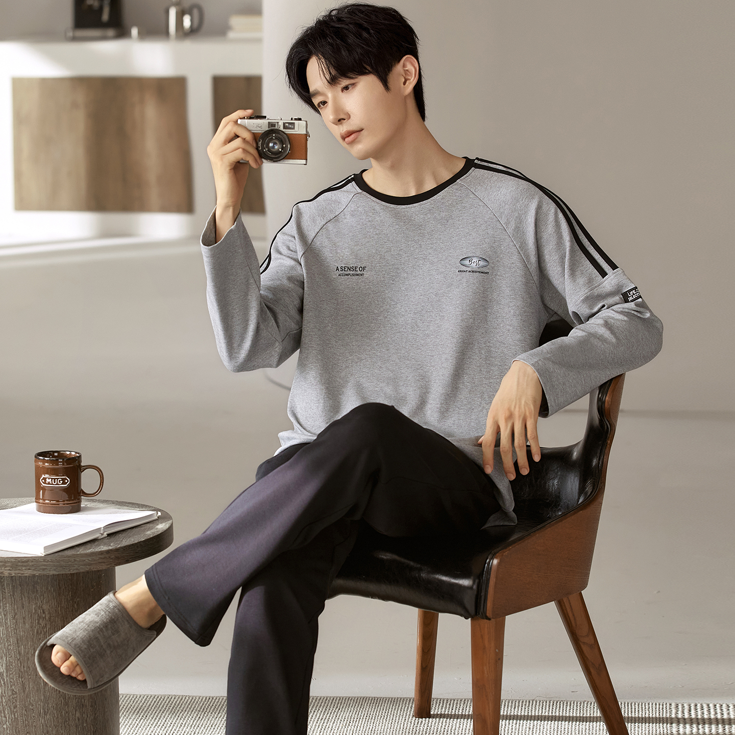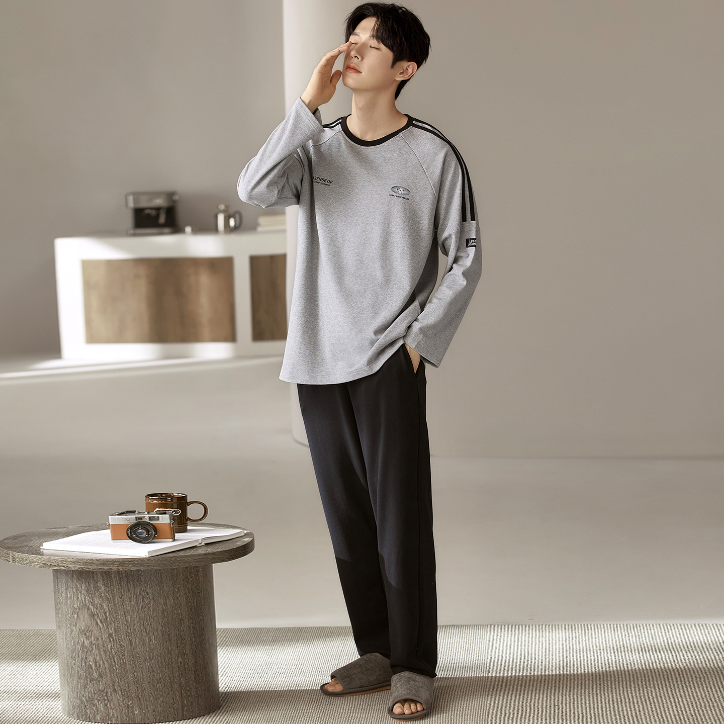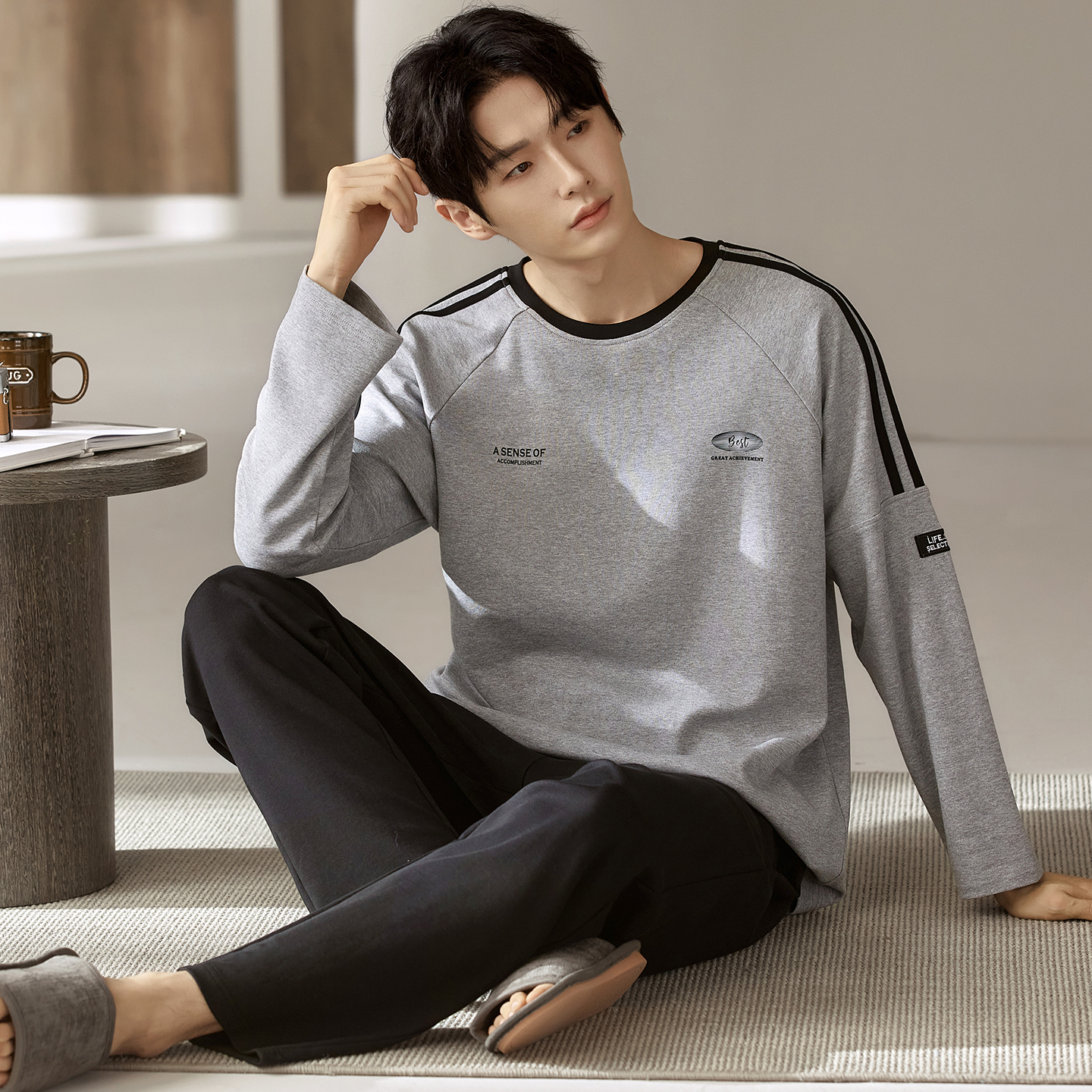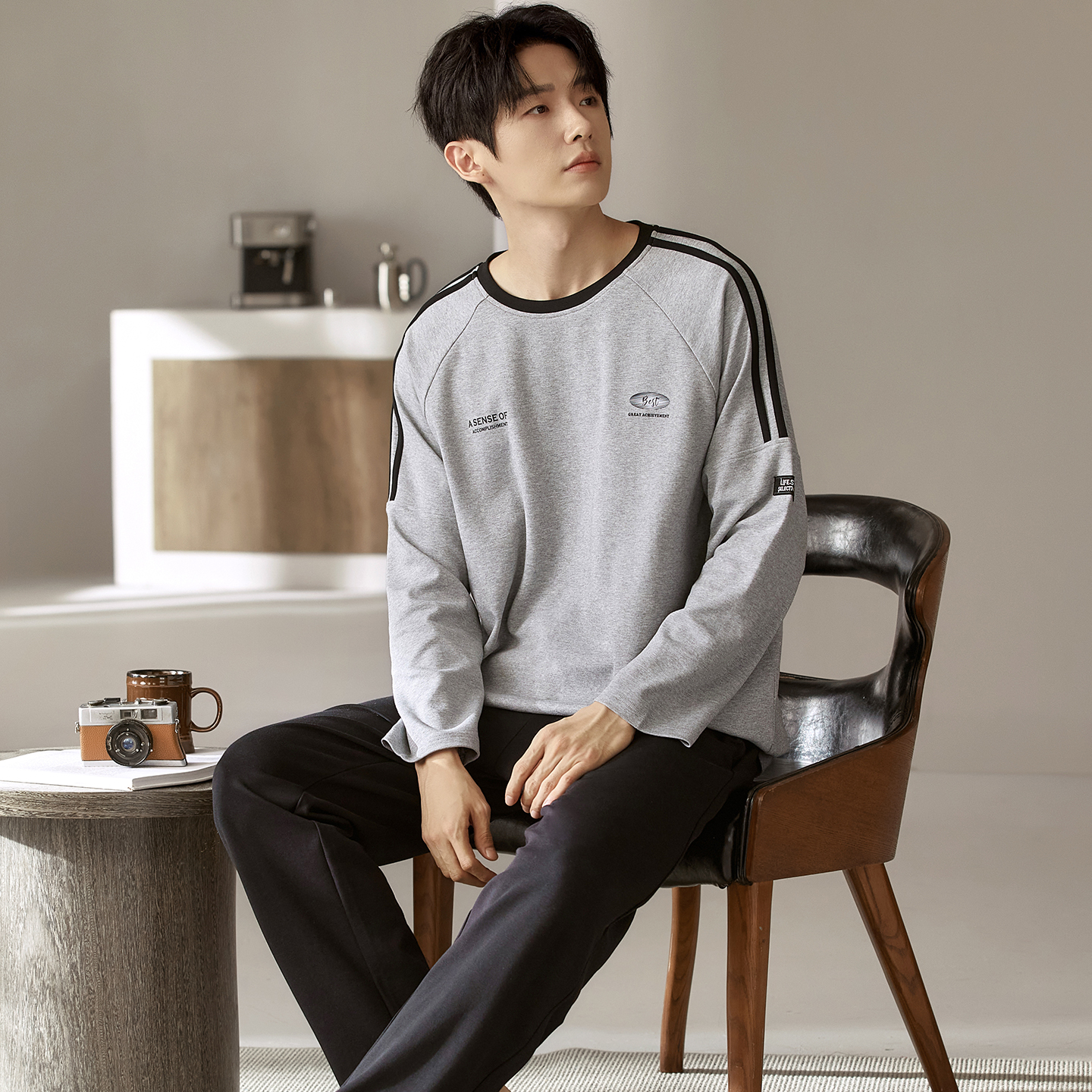 可外穿印花宽松休闲家居服套装 宜而爽春秋款 长裤 圆领纯棉长袖 男士