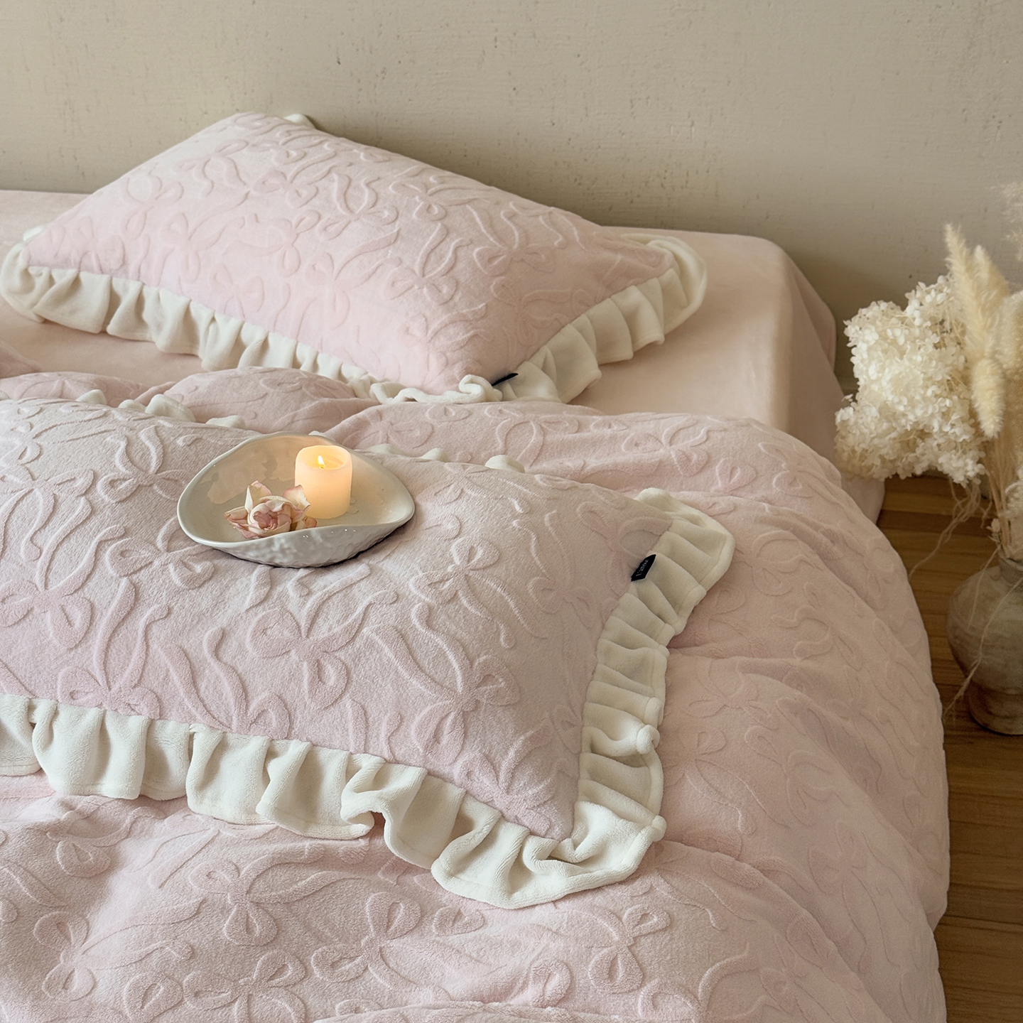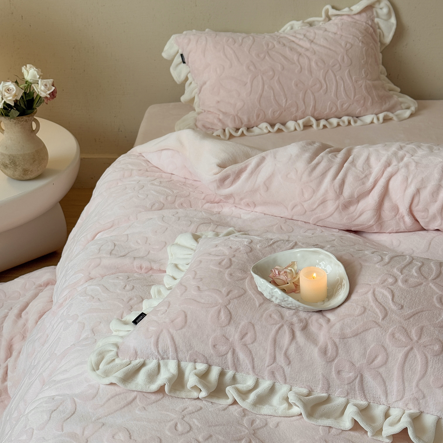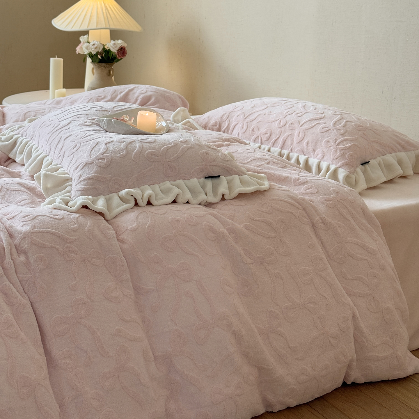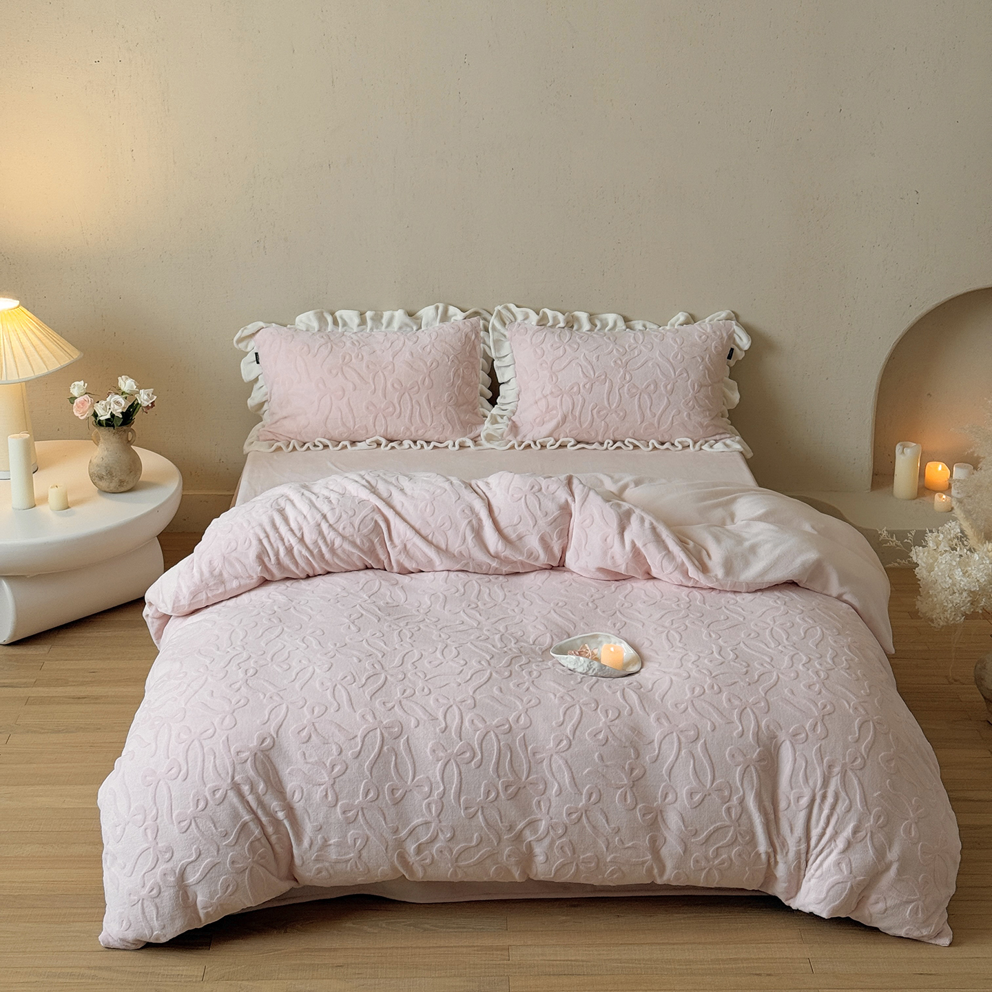 床品 保暖加厚床上四件套公主风被套枕套秋冬季 韩式 牛奶绒花边款