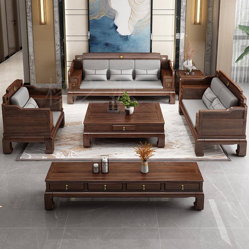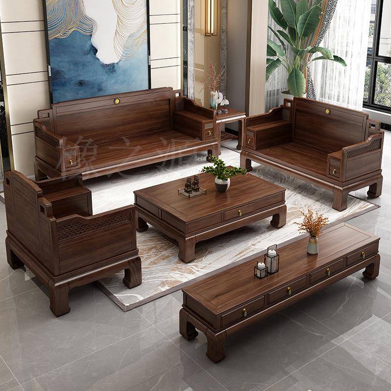 需定制新中式 全实木沙发组合黑胡桃古典客厅家用别墅冬夏两用仿古